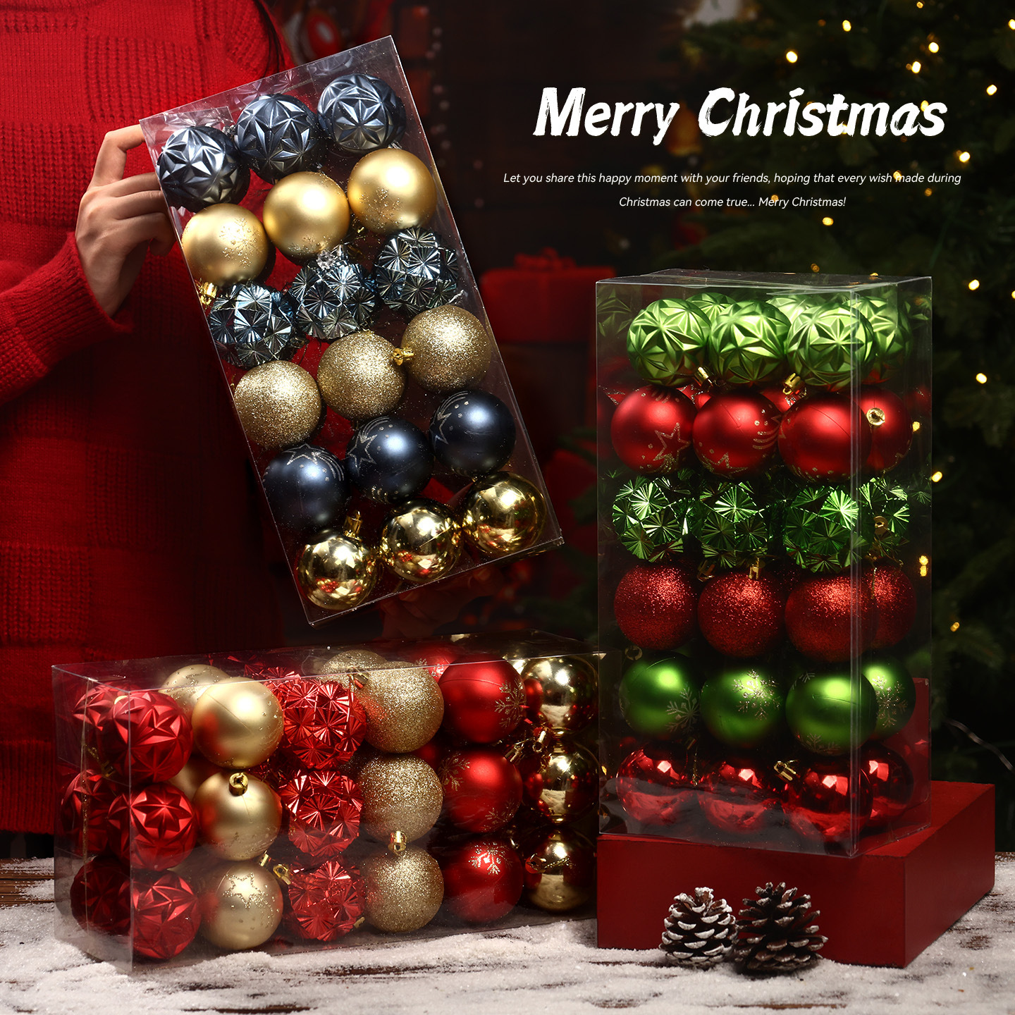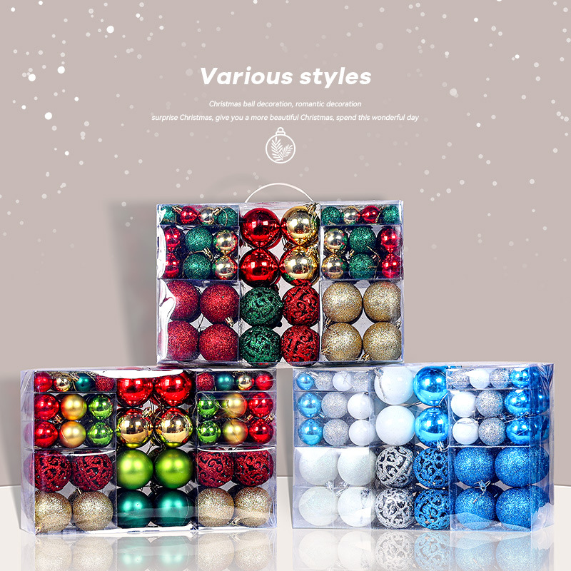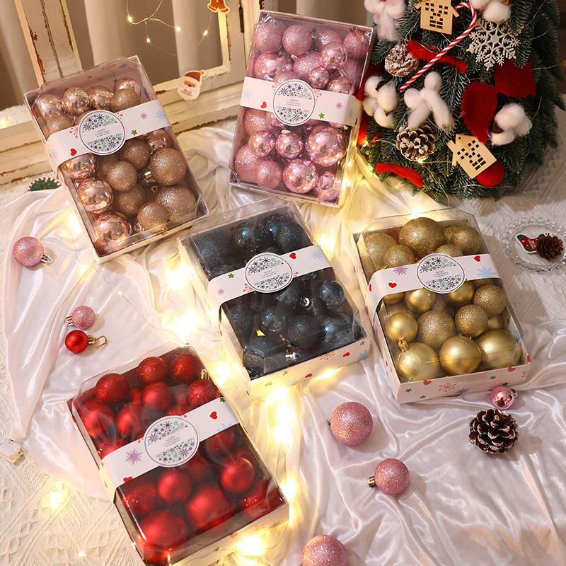 圣诞球礼盒套装36个装6cm圣诞装饰球圣诞树装饰挂饰彩球圣诞装饰