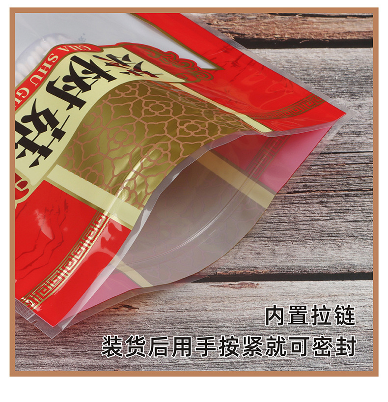 中国薬材包装袋オレンジ色グリーンジッパー自封袋プラスチック滋補スープ材中材袋ギフト袋