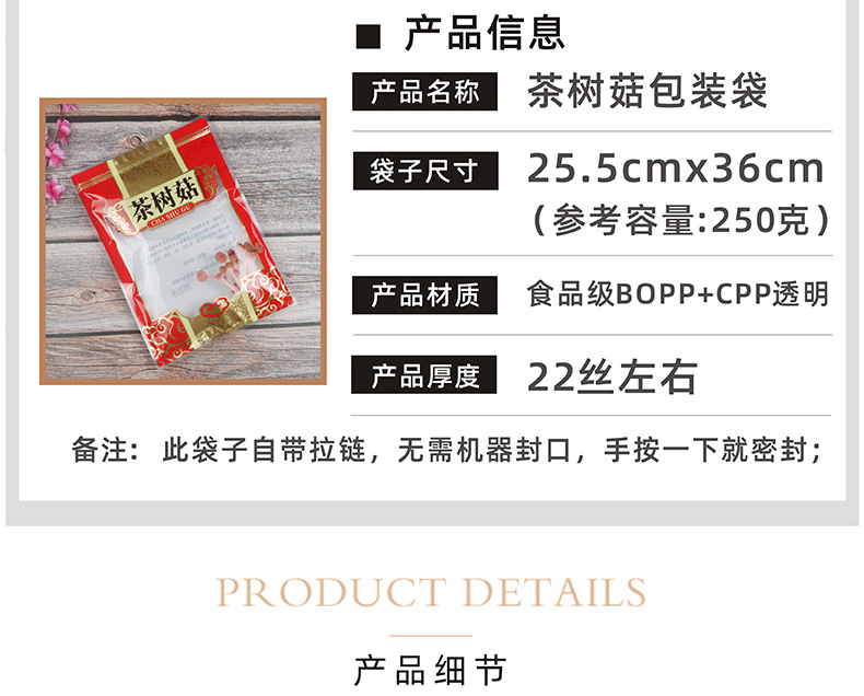 シイタケ包装袋ビニール袋透明密封袋自封チャック袋食用菌プレゼント袋250g