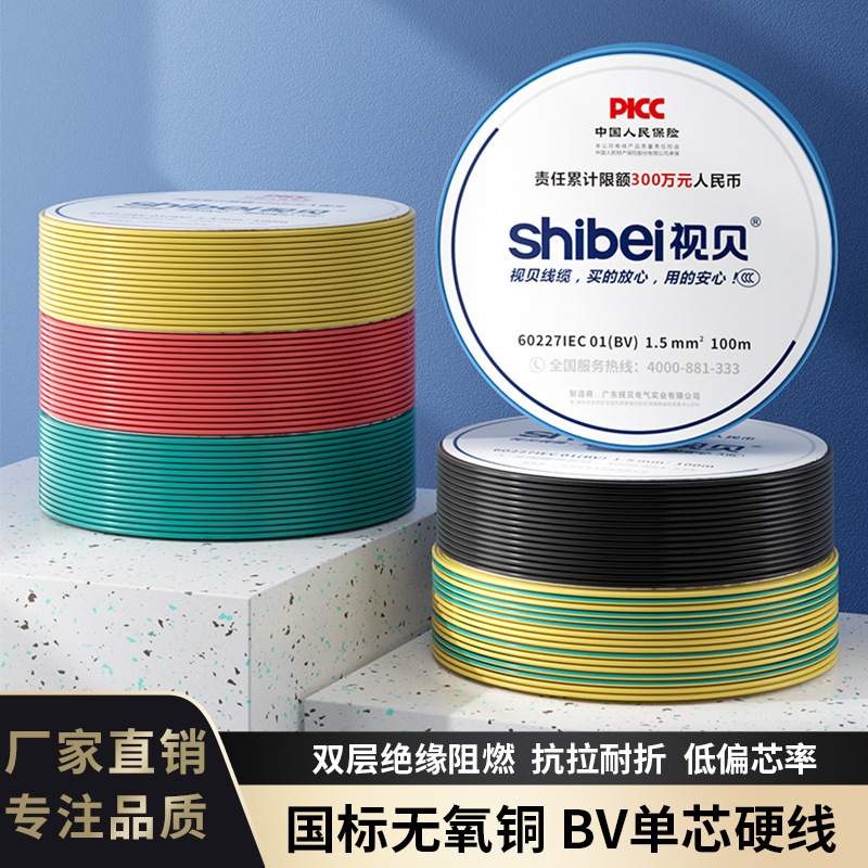視貝国標bv家庭用単株硬線1家装2.5/4/6/10/16平方難燃純銅接地電線
