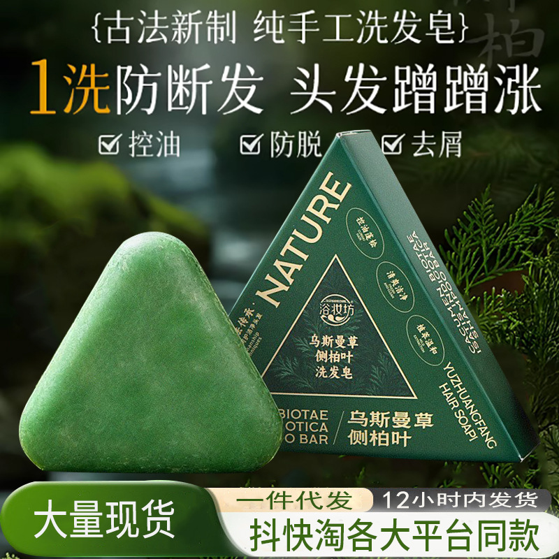 抖音爆款乌斯曼草洗发皂侧柏叶手工皂固发养发草本植物精油香皂