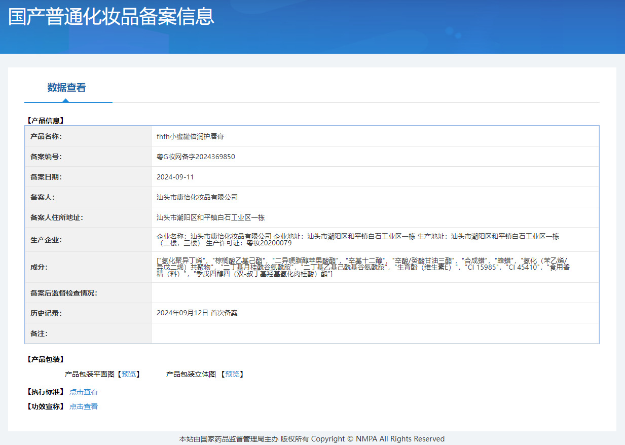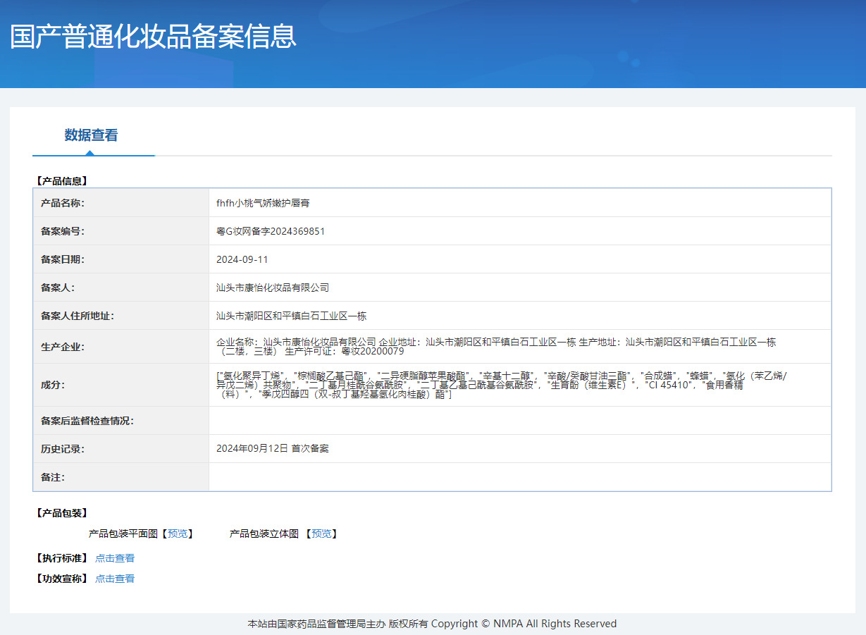 特殊化粧品登録証番号 広東省Gメイクアップネットワーク準備番号2024369851