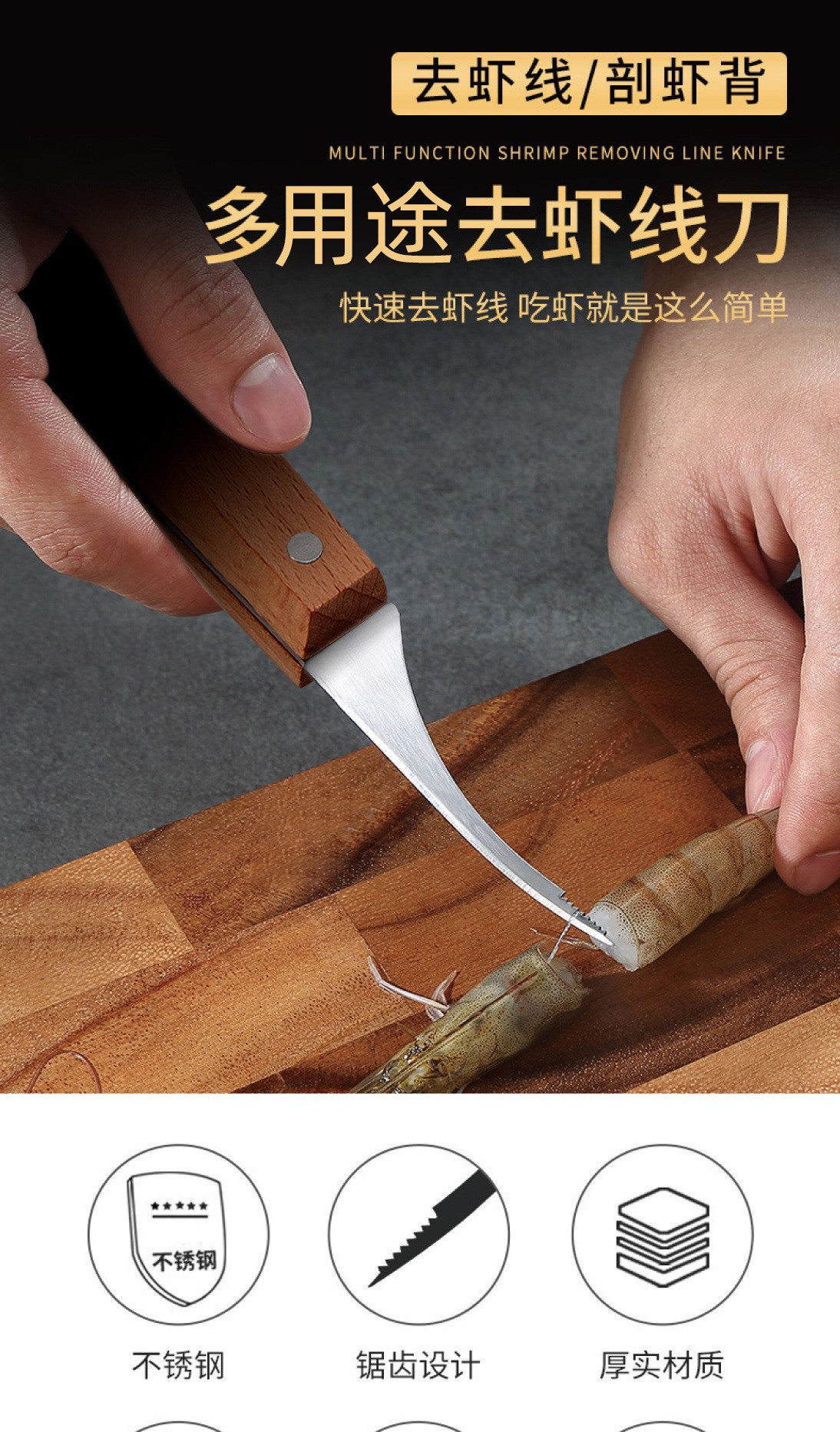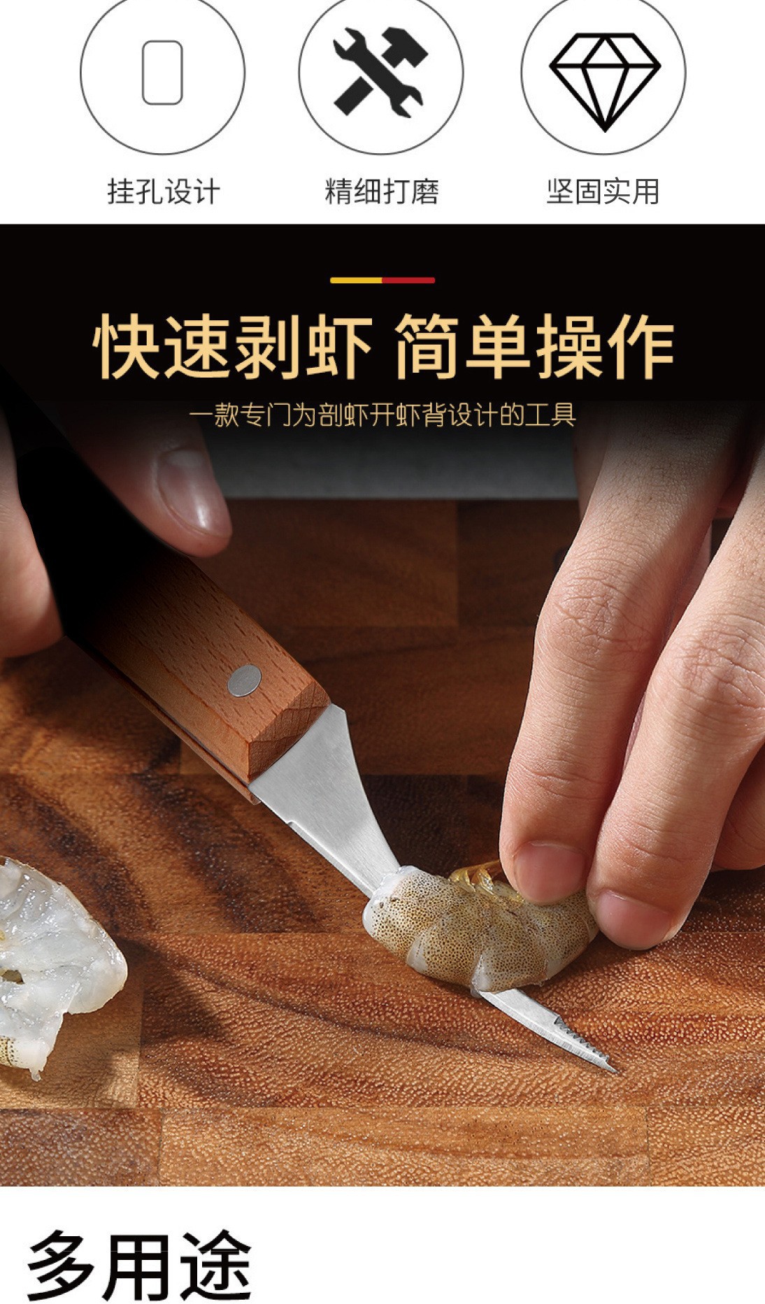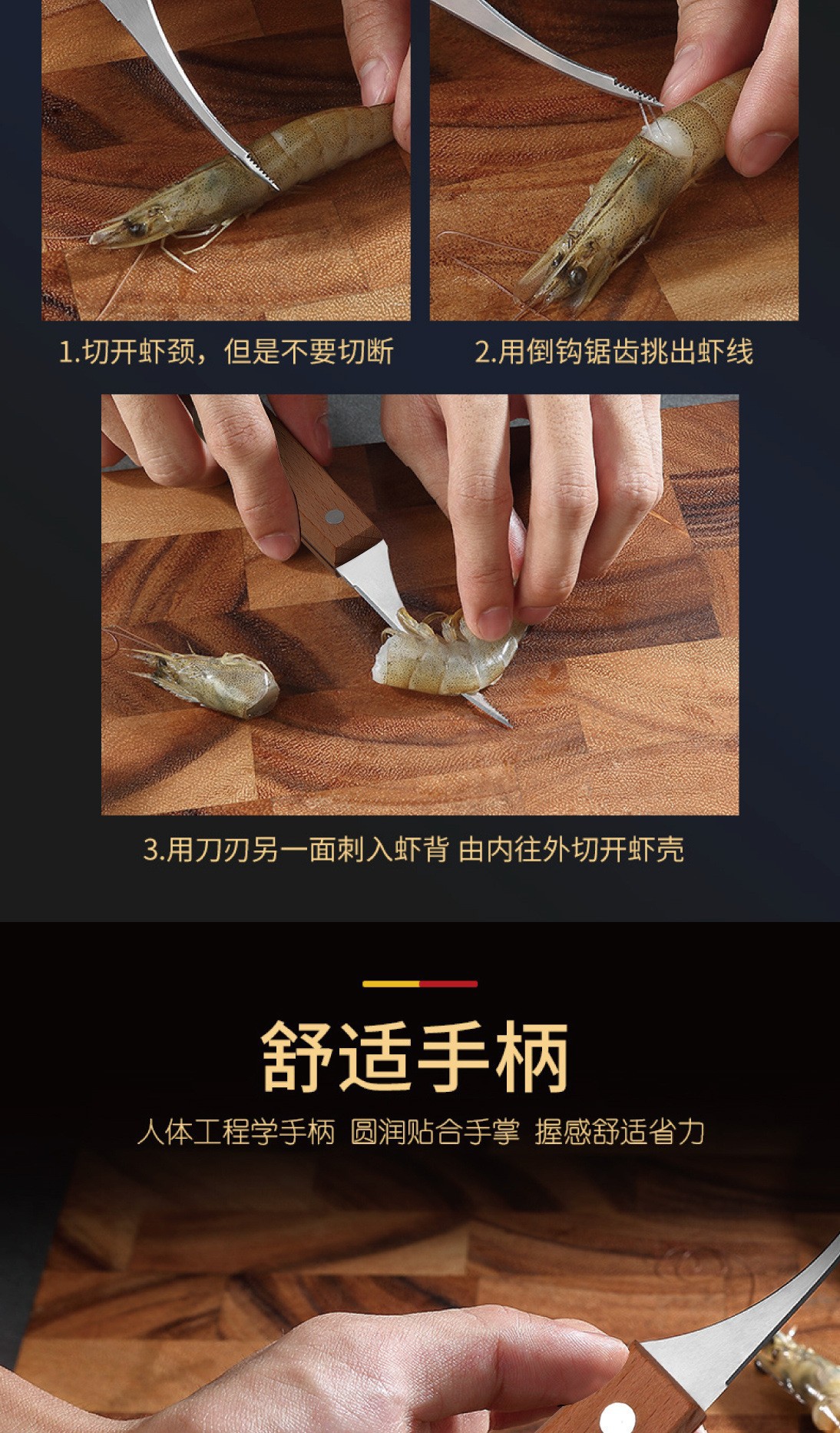 エビの線の刀の台所はエビの背を開けてエビの刀の家庭を剥ぎ取ってエビの線のステンレスの神器を取り除きます。