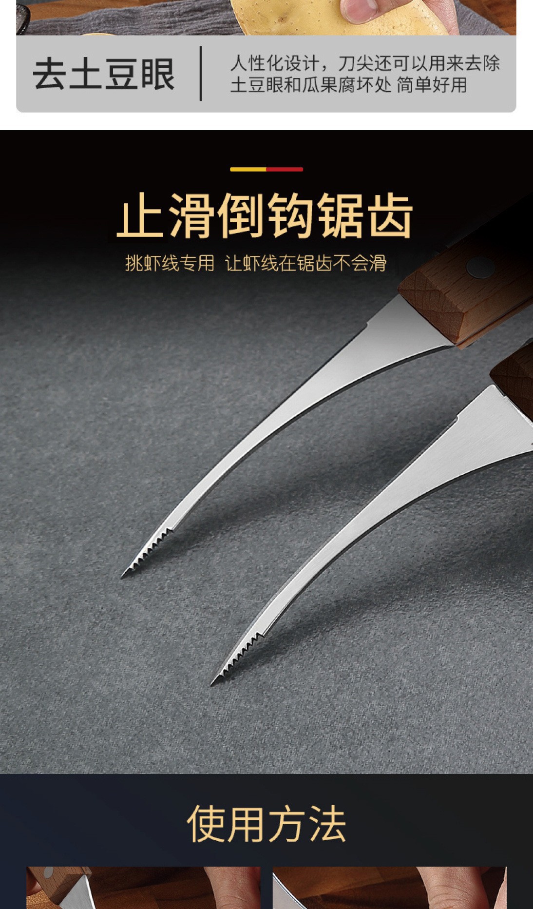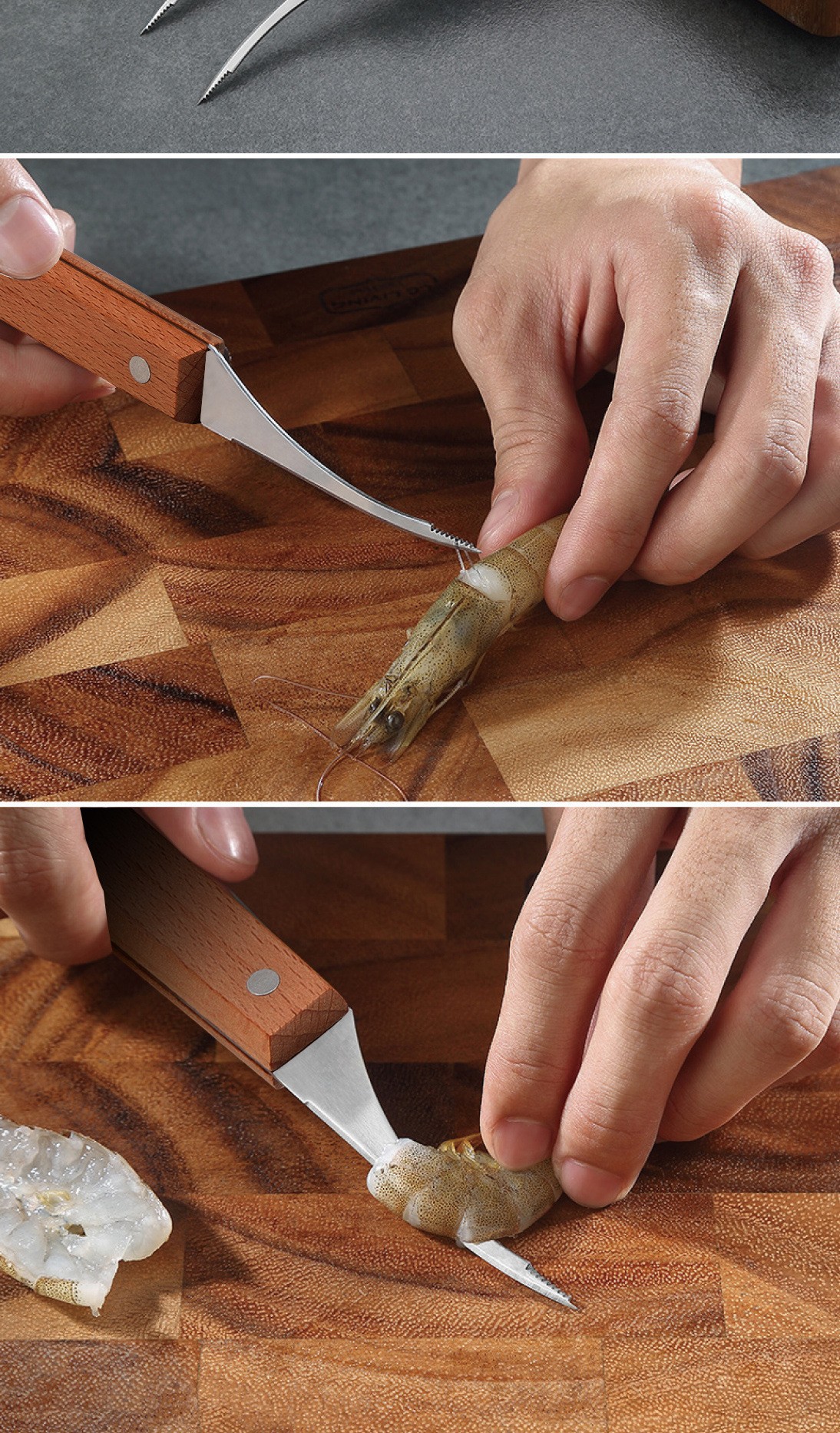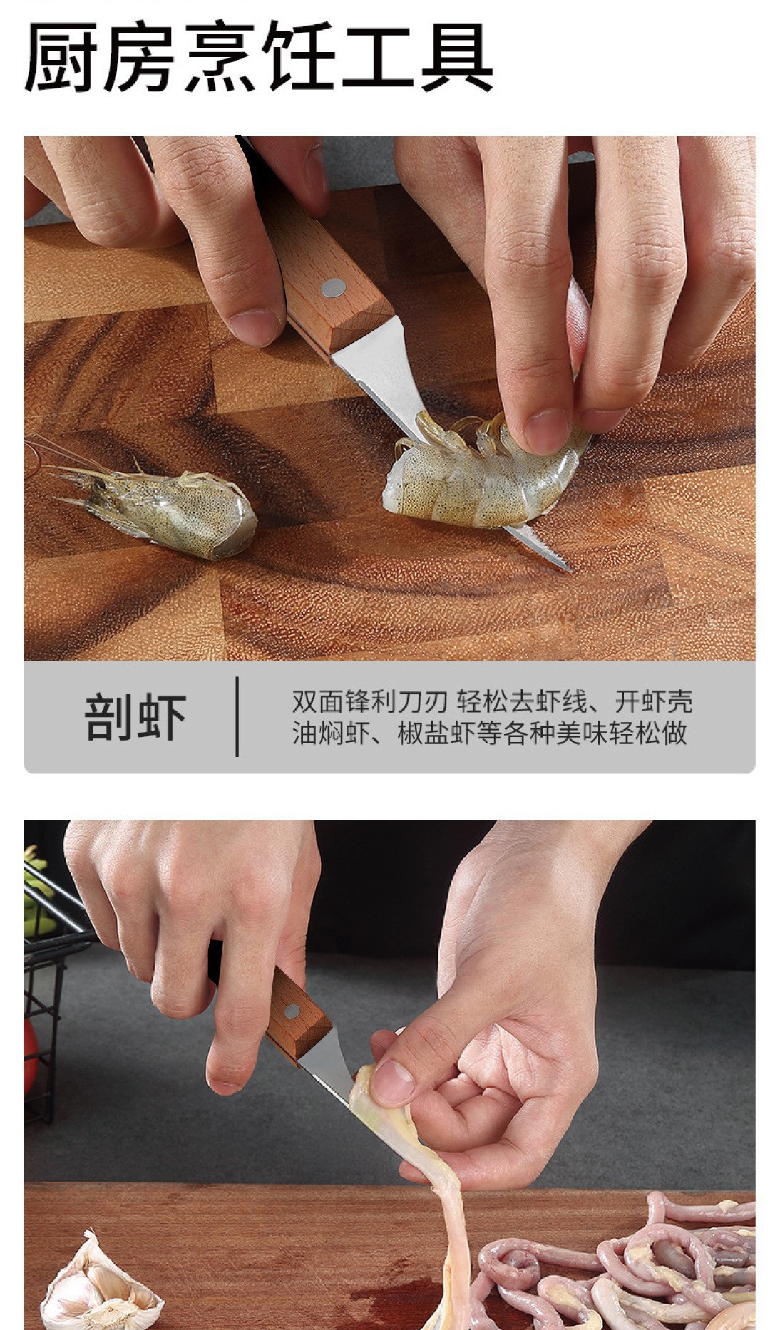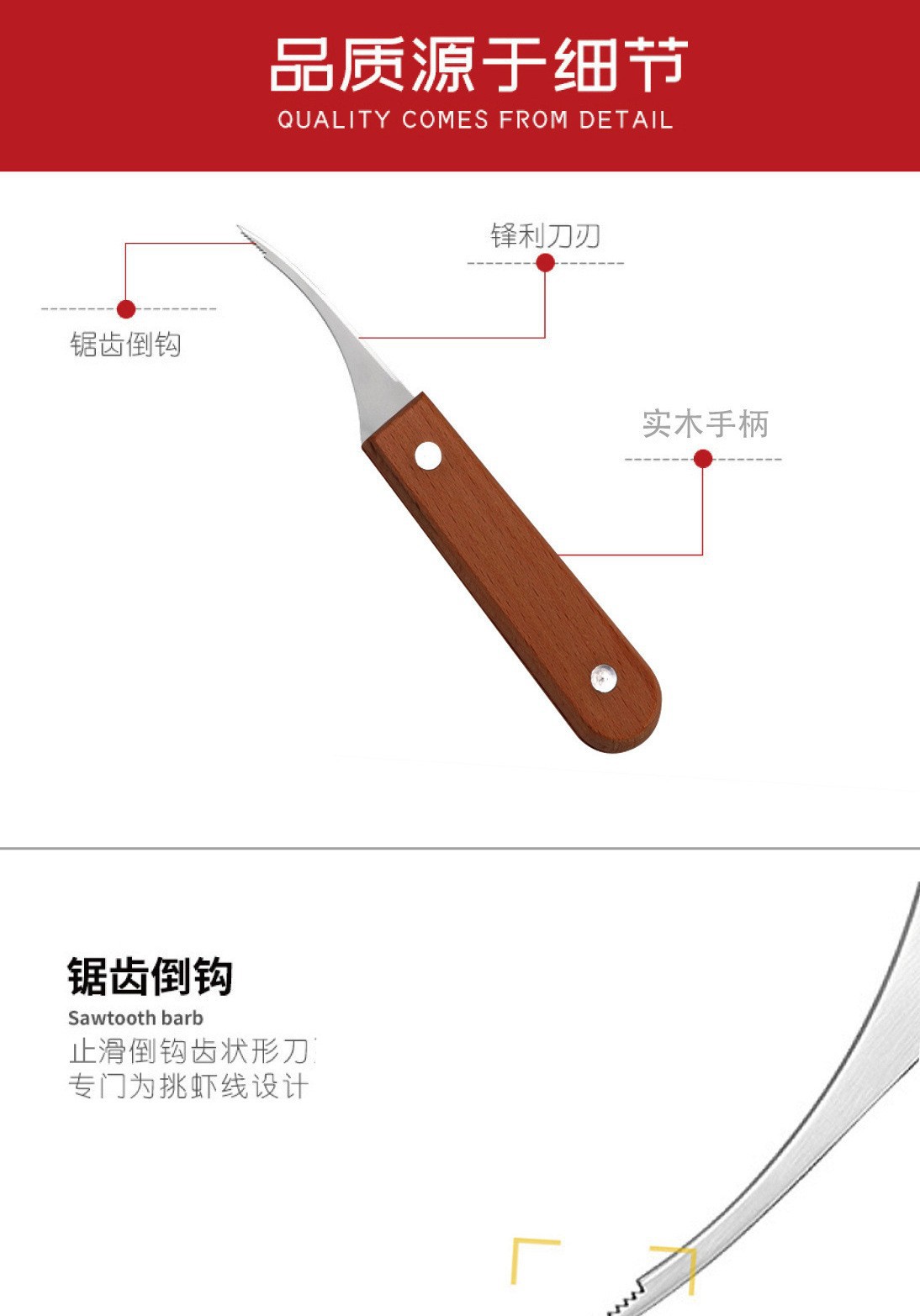 エビの線の刀の台所はエビの背を開けてエビの刀の家庭を剥ぎ取ってエビの線のステンレスの神器を取り除きます。