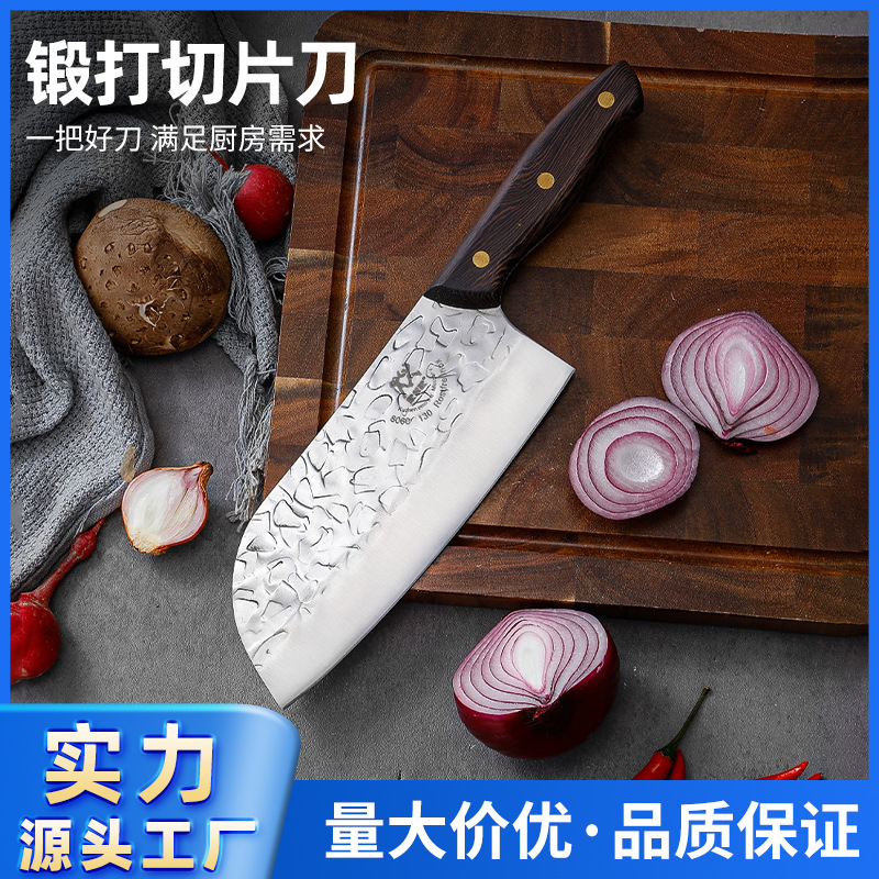 無垢材ハンドル槌目鍛造家庭用中国風女性用包丁ステンレス鋼ハイエンド電子商取引人気包丁