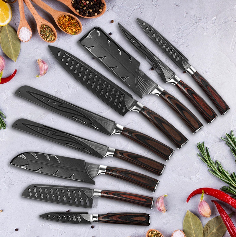 スポット外国貿易クロスボーダーダマスカスレーザー模様ステンレス鋼洋食シェフナイフセットギフト用