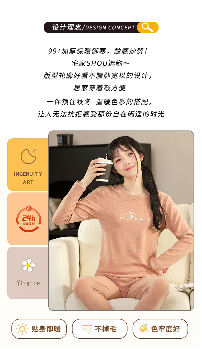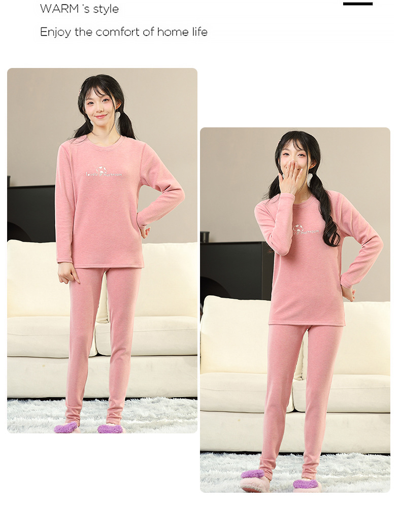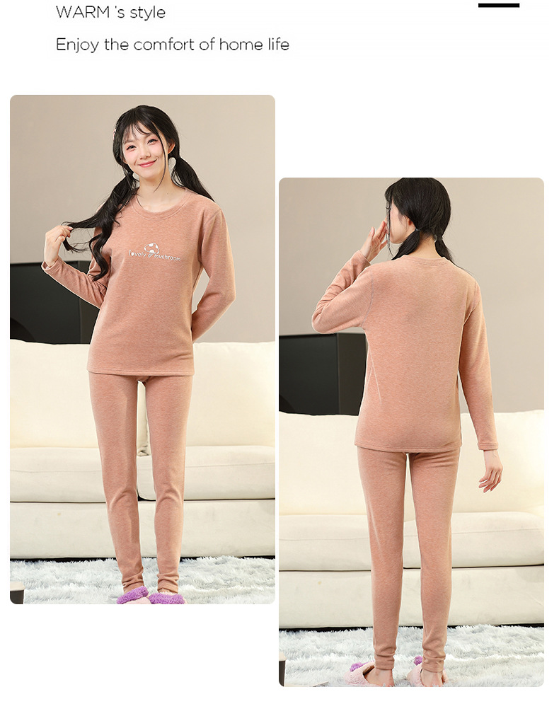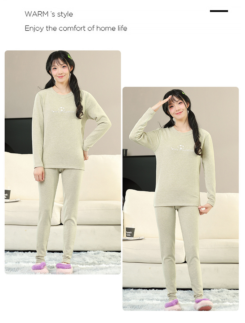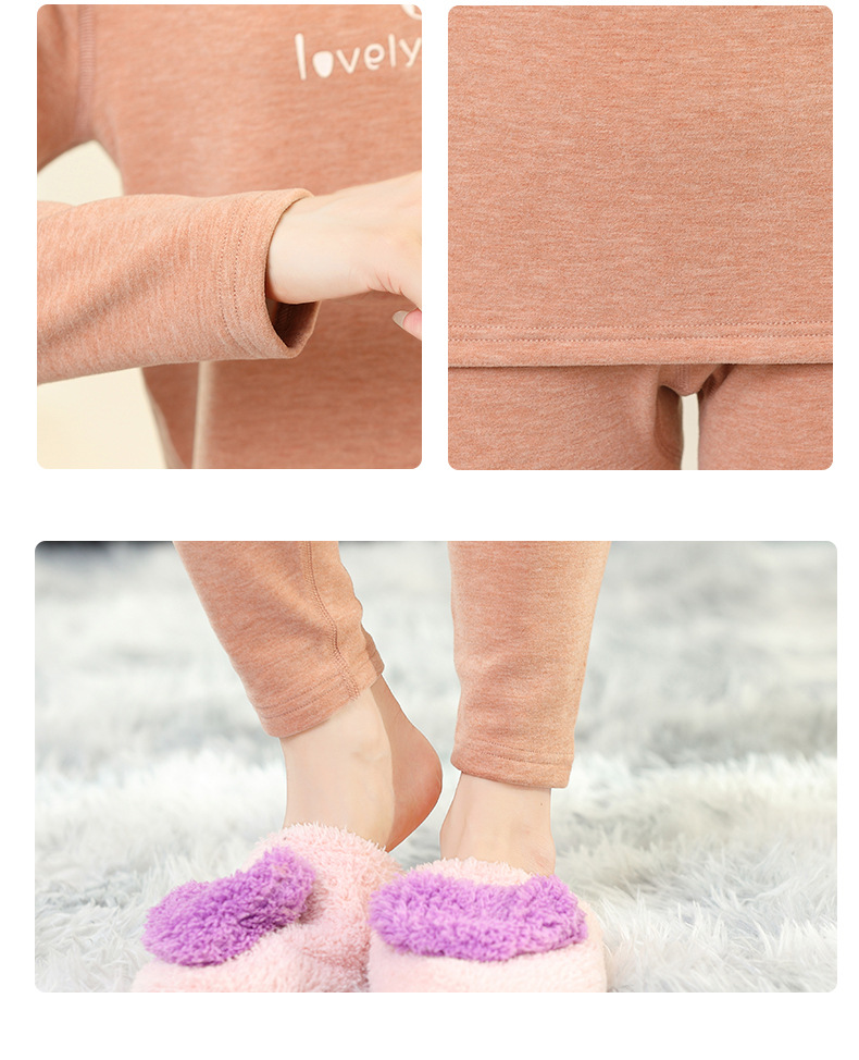 青少年の新型保温下着女性秋衣秋ズボン少女コアラのベルベットと厚い綿のセーターセット