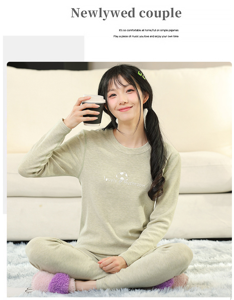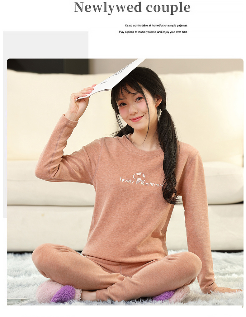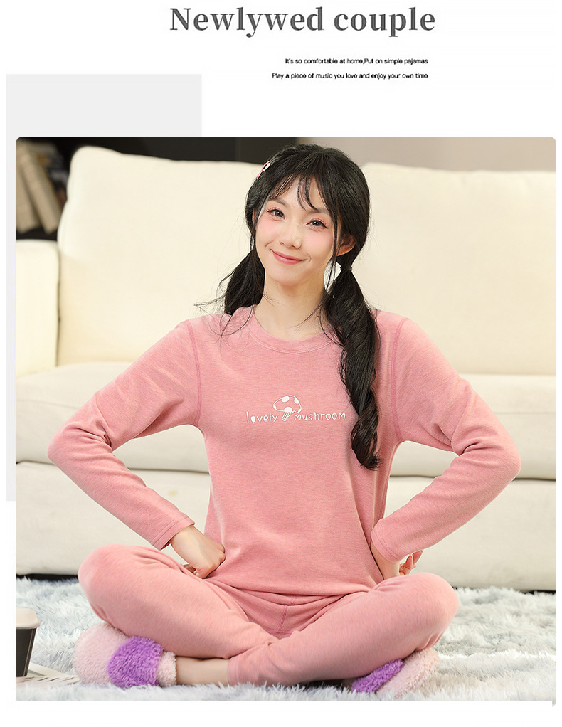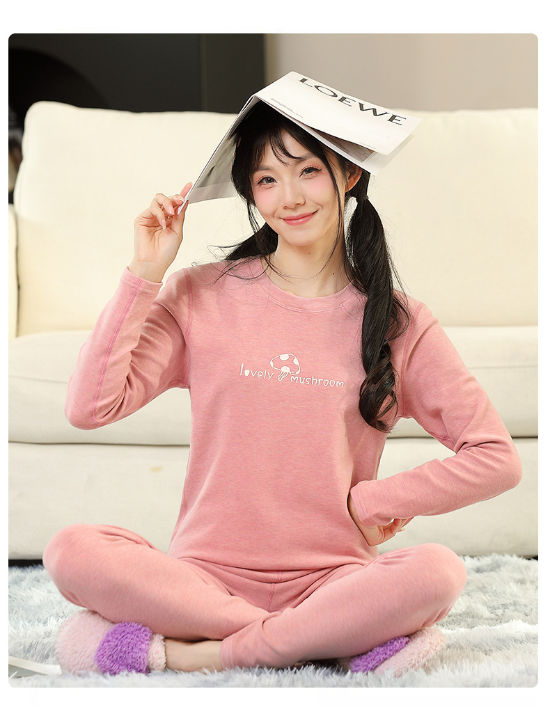 青少年の新型保温下着女性秋衣秋ズボン少女コアラのベルベットと厚い綿のセーターセット