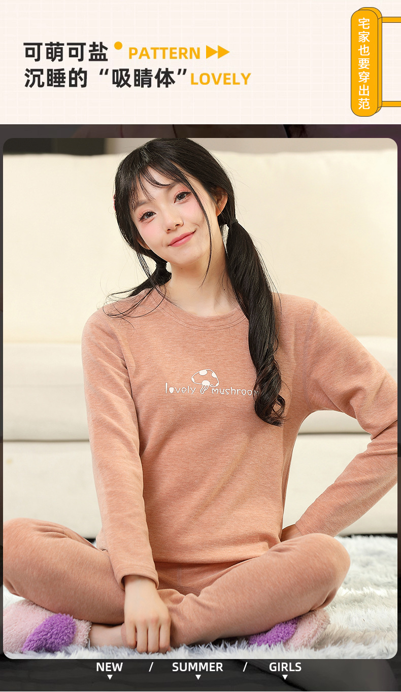 青少年中学生秋衣秋ズボンセット少女大童発熱保温下着高校生シャツ学生