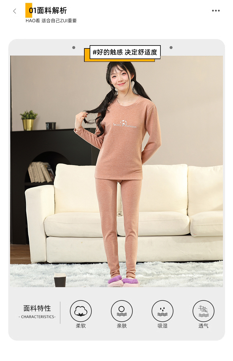 保暖内衣女士秋衣秋裤青少年学生德容线衣线裤抗菌棉毛衫时尚套装