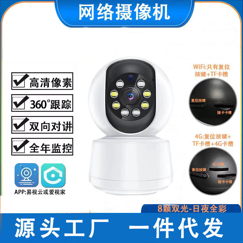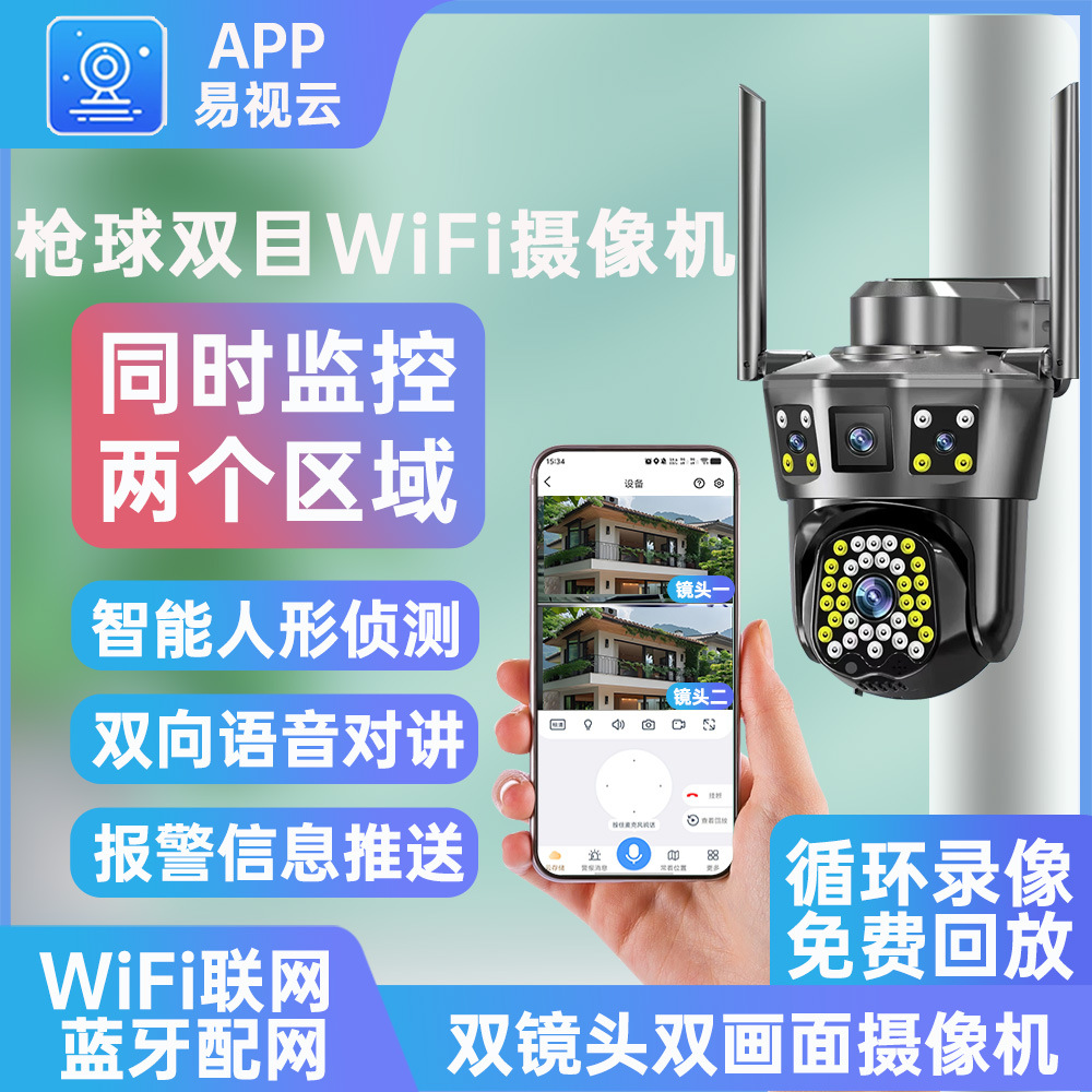 APP:易视云,国外APP:EseeCloud 无线WiFi双画面监控摄像头,支持5GWiFi双频,夜视全彩,支持双向语音对讲,支持录像回看不收费,录像下载,支持云存储360度无死角监控,帮您看家看护老人小