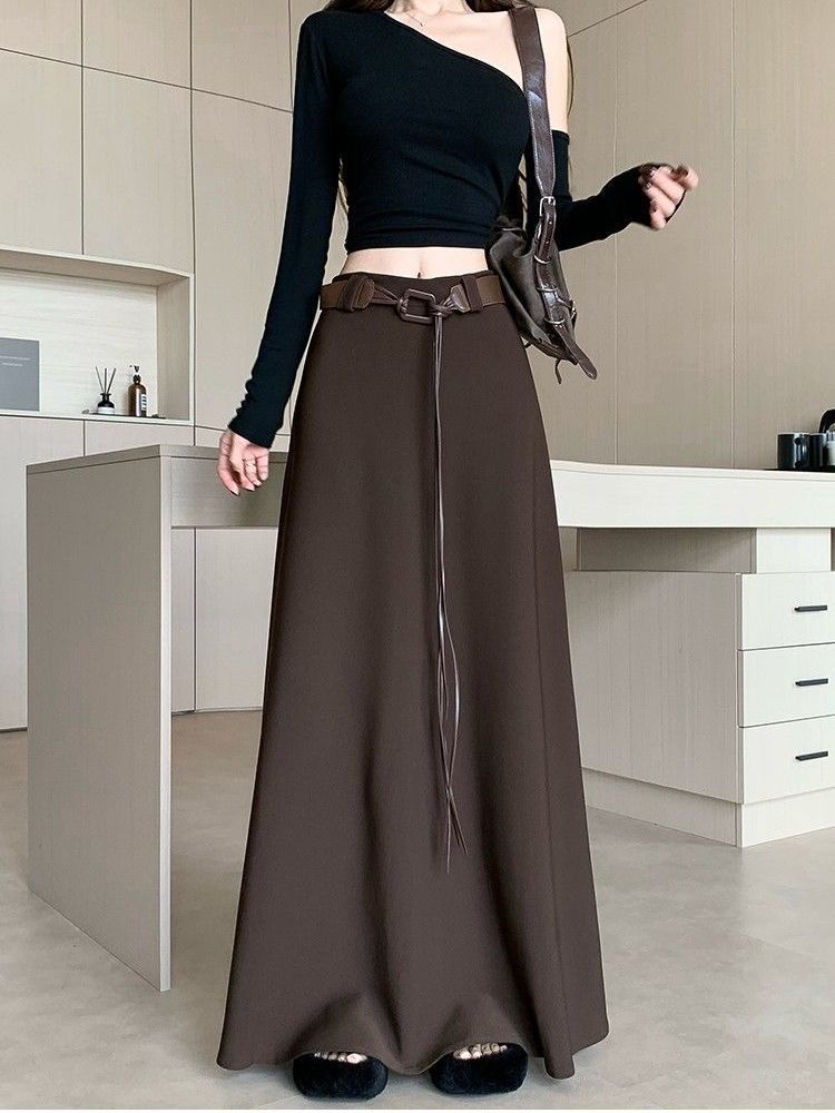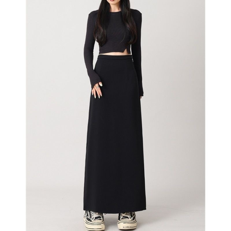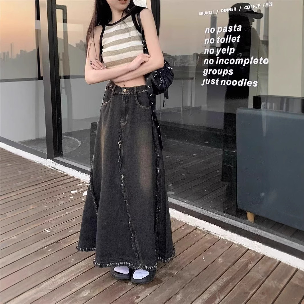 黒いデニムのスカートのロングスカートの女性2025春秋の新型の百合a字の版型の毛の辺はやせているスカートのハーフスカートを現します。