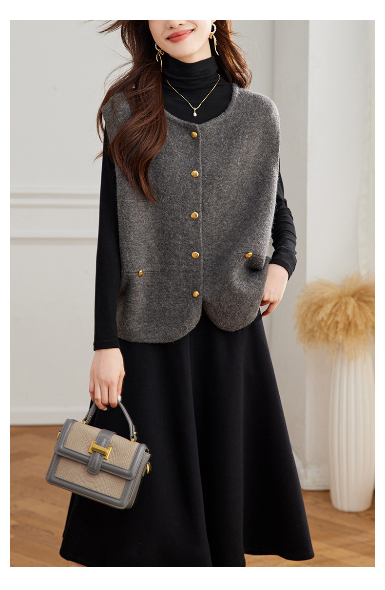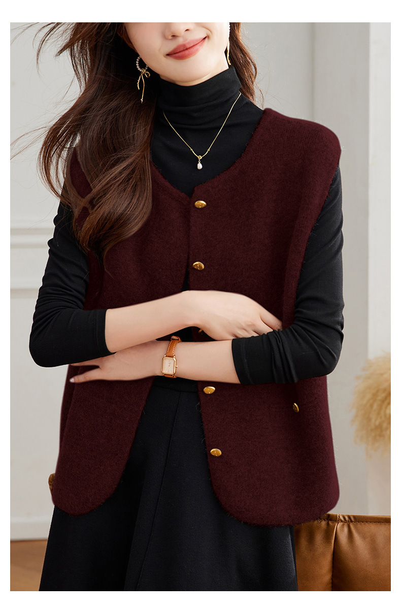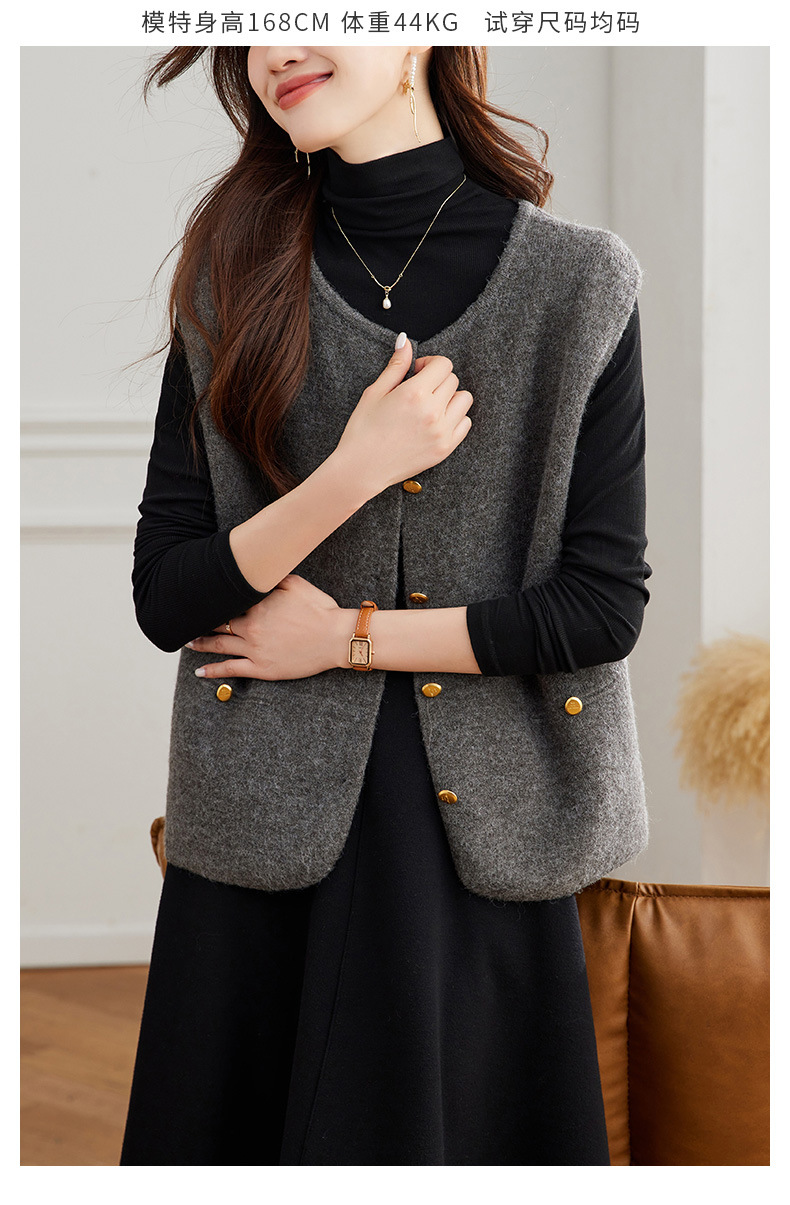 公式サイト写真 Vネック斜めボタンベスト レディース 2025春秋 大きいサイズ 高級感 おしゃれ ゆったり 着痩せ 重ね着ベスト