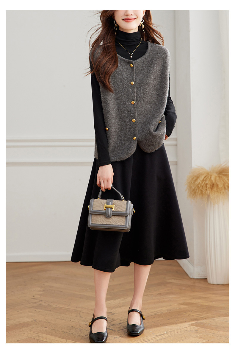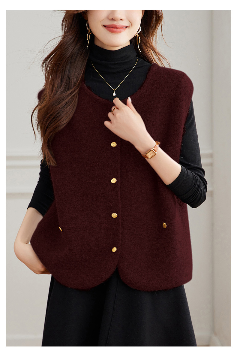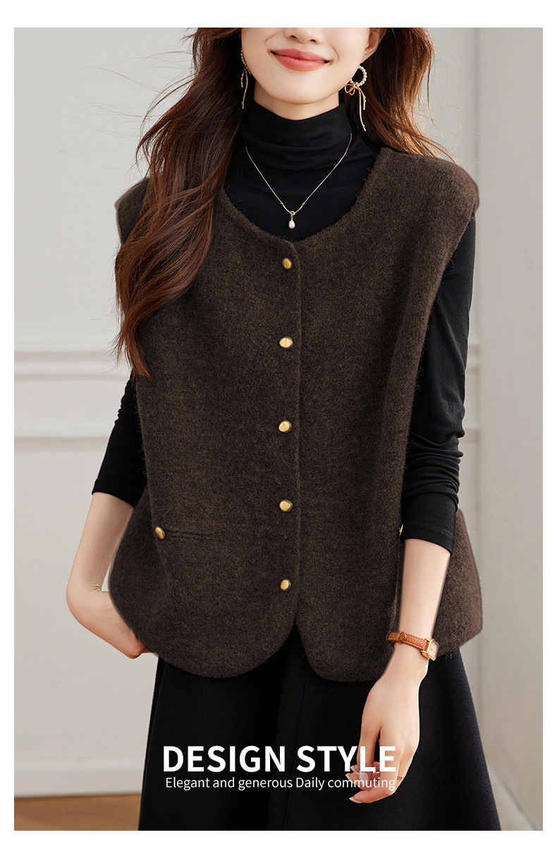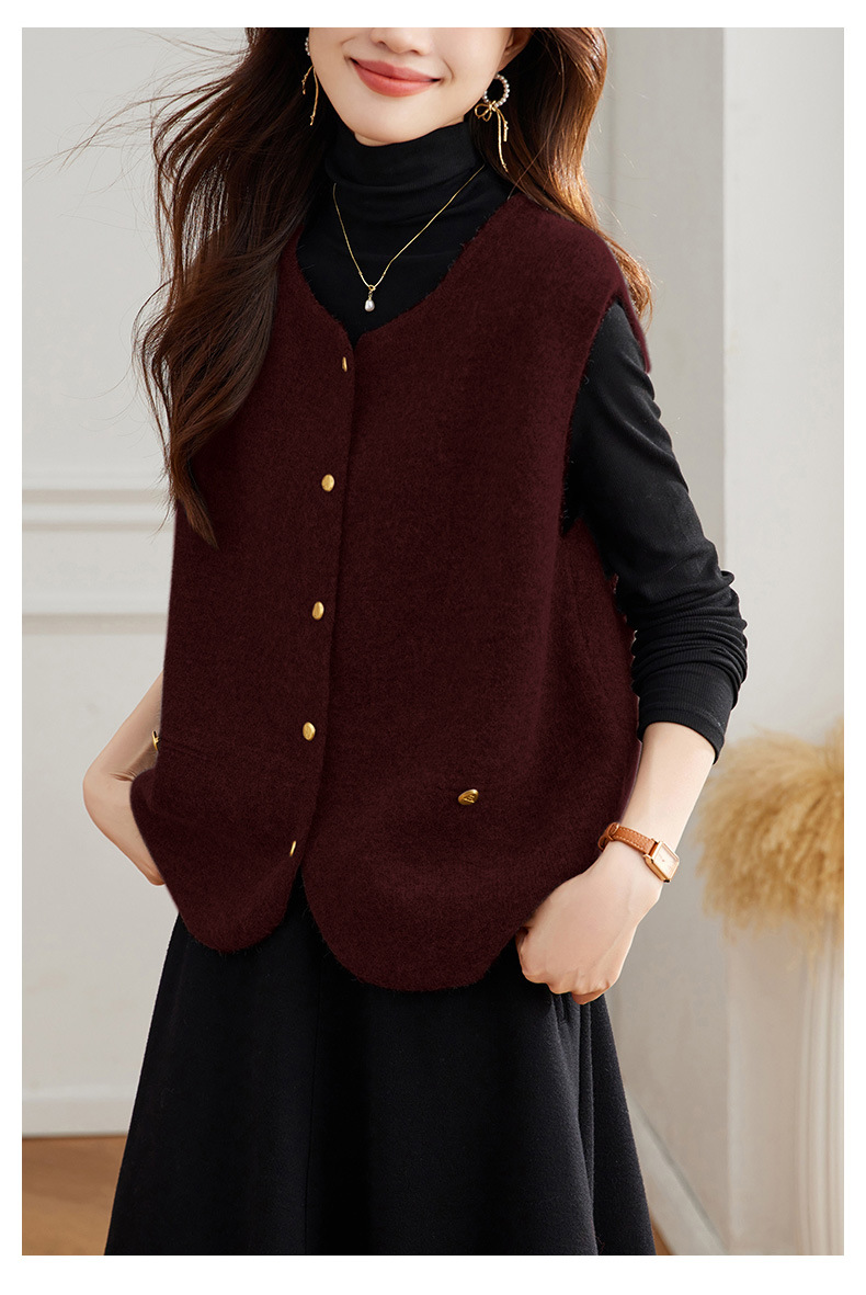 公式サイト写真 Vネック斜めボタンベスト レディース 2025春秋 大きいサイズ 高級感 おしゃれ ゆったり 着痩せ 重ね着ベスト