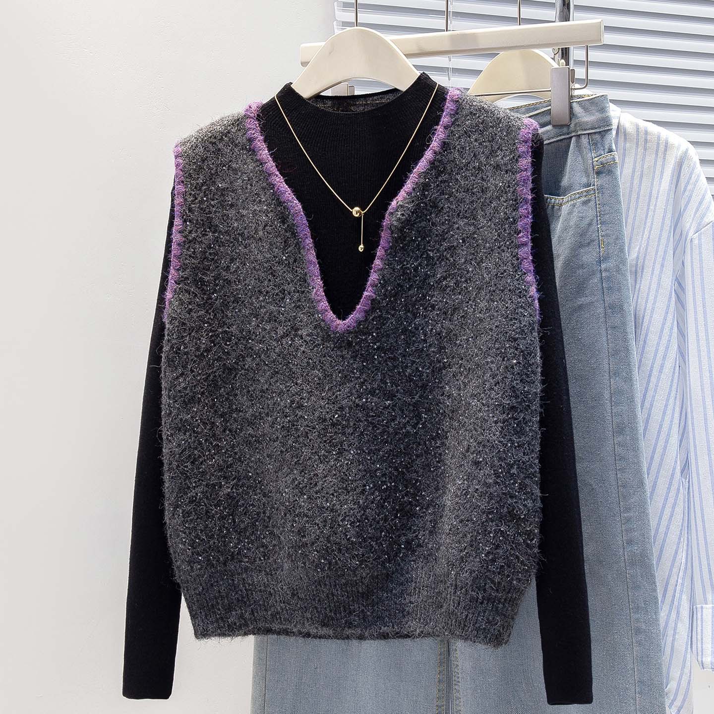 棉茧 亮闪闪套头针织马甲女韩版秋冬新款小众设计感坎肩毛衣