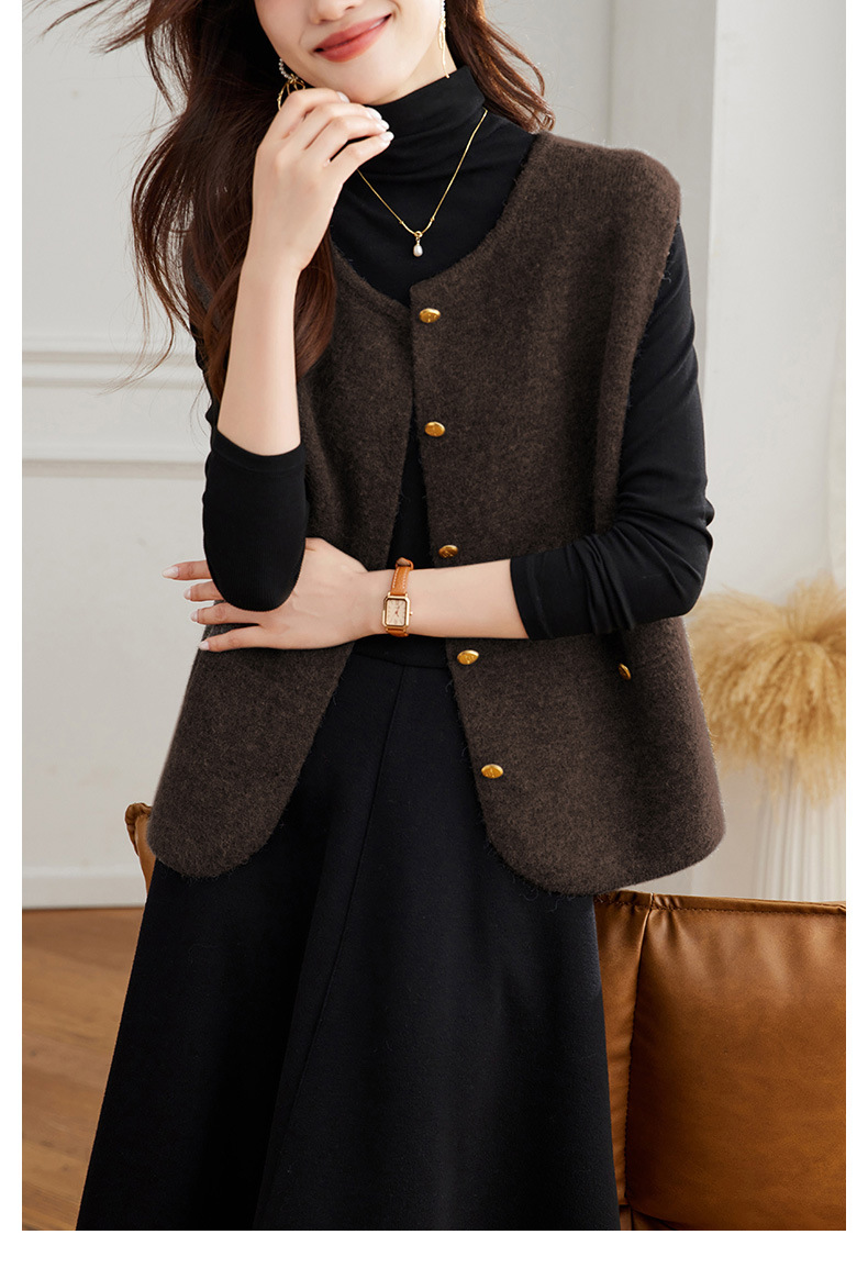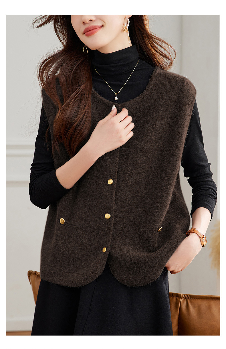 棉茧 针织马甲背心韩版简约无袖款2025年秋冬单排扣叠穿马甲背心