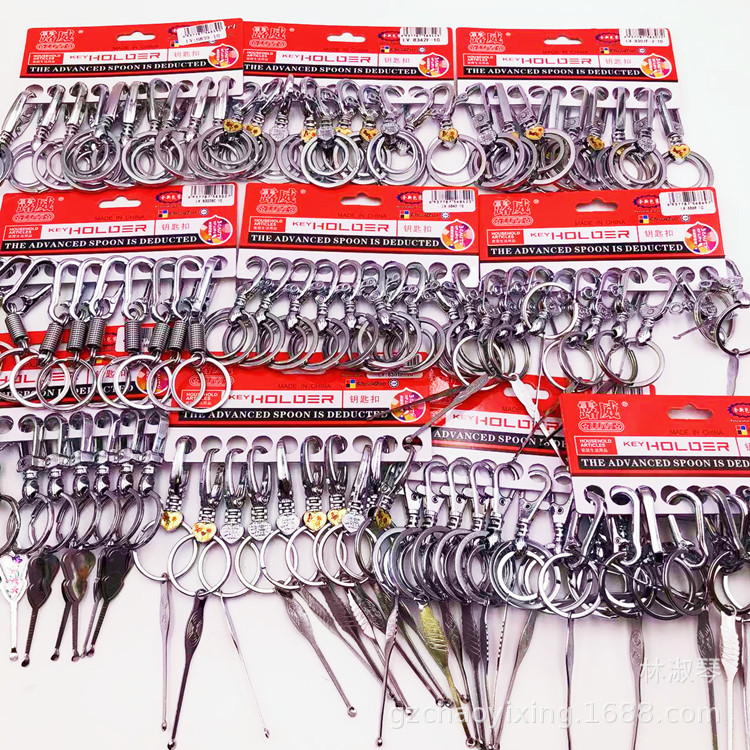 メーカー直販の新型キーホルダー二重リング鍵ストラップ紛失防止キーホルダー耳抜きスプーン付きキーアクセサリー卸売り