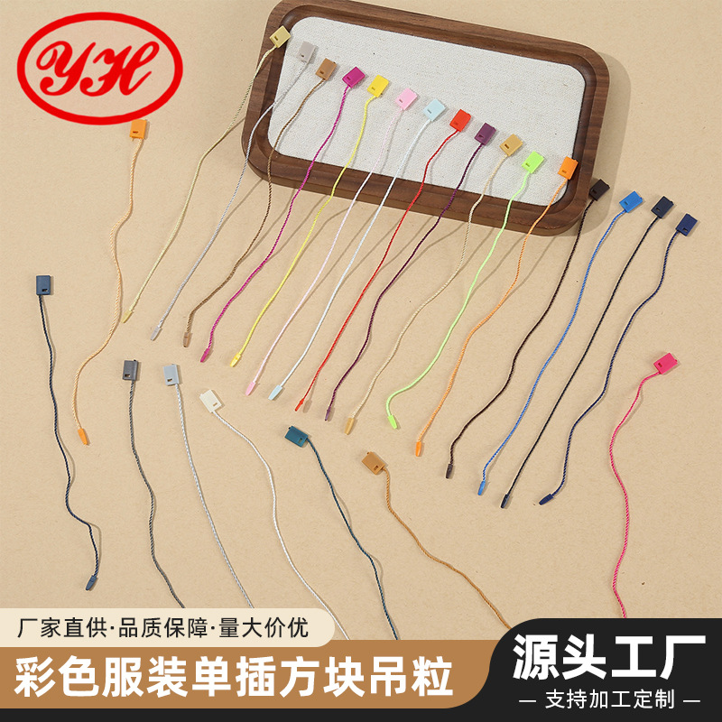 彩色服装单插吊牌塑料吊粒子弹圆头服饰箱包挂绳配件厂家批发