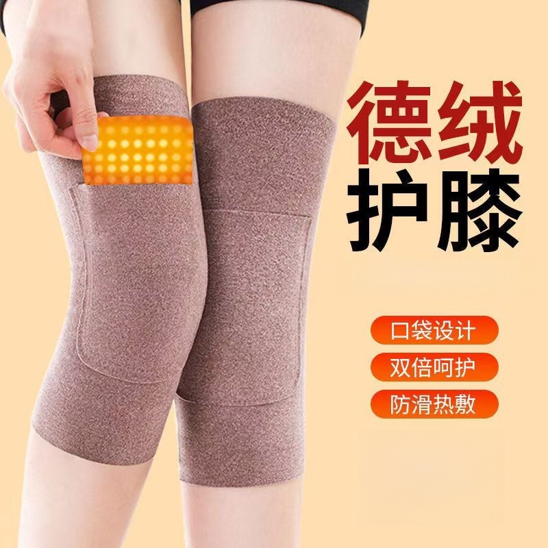 德绒口袋护膝加绒盖保暖老寒腿发热护膝套男女保暖防寒运动护腿套