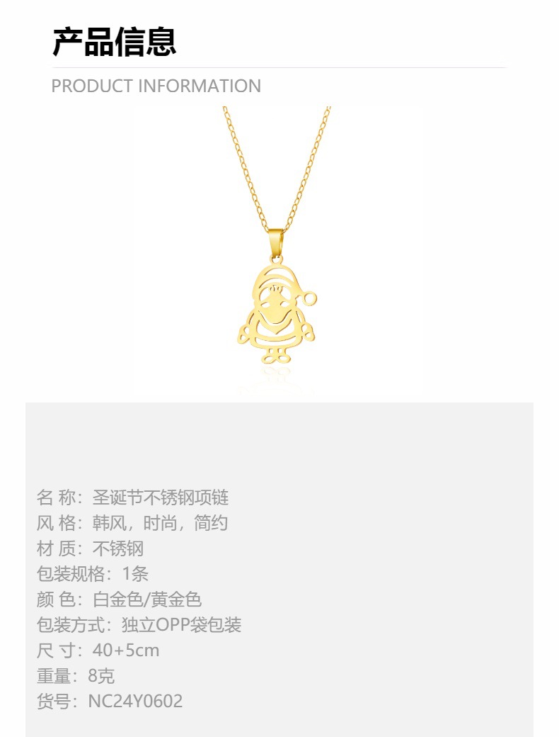 跨境欧美新款圣诞不锈钢项链百搭圣诞节不锈钢圣诞老人麋鹿项链女