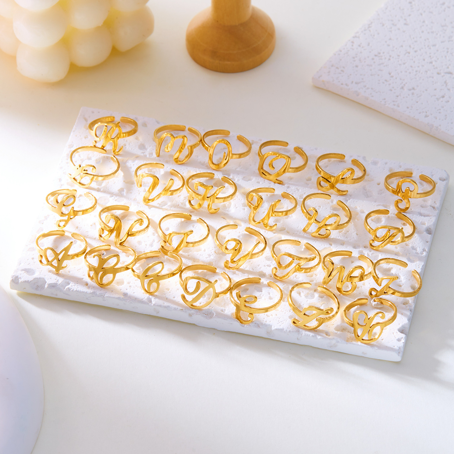工場直販 跨境 新型 26文字 ステンレス製 オープンリング 指輪 おしゃれ 個性的な文字リング 在庫あり