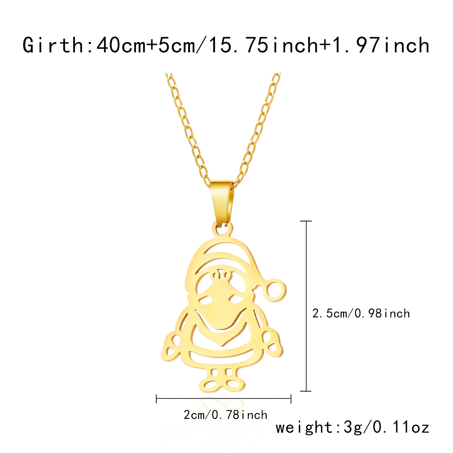欧米風シンプルクリスマスステンレスネックレス、炉内18Kゴールド加工サンタクロース、エルク、雪の結晶ネックレス(女性用)