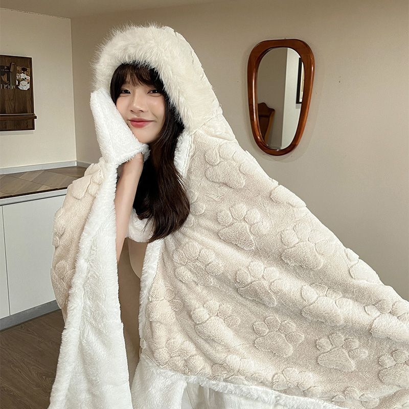可穿式懒人披肩毛毯冬季双层加厚羊羔绒办公室午睡斗篷式披风毯子