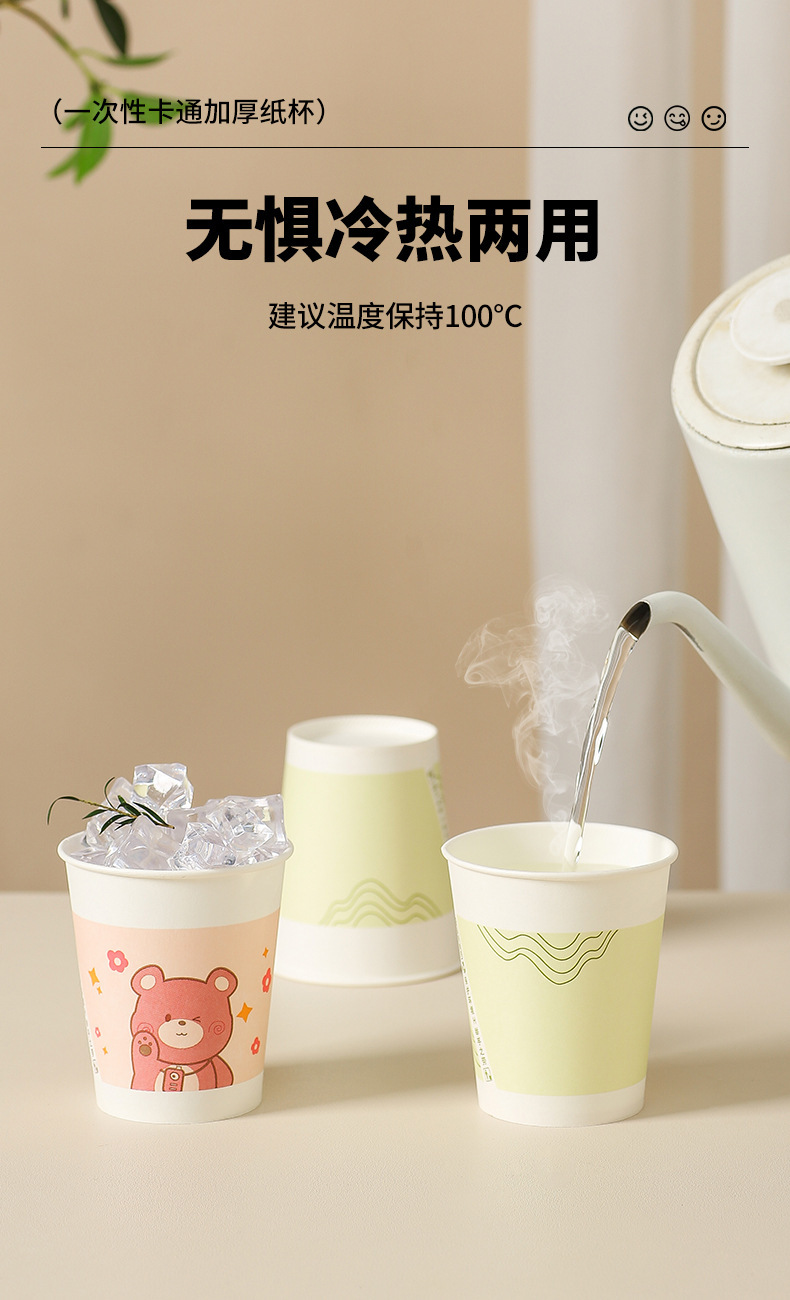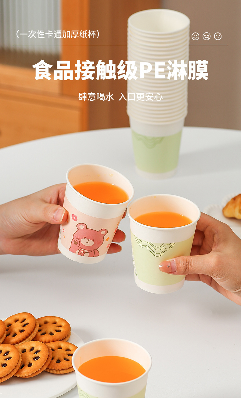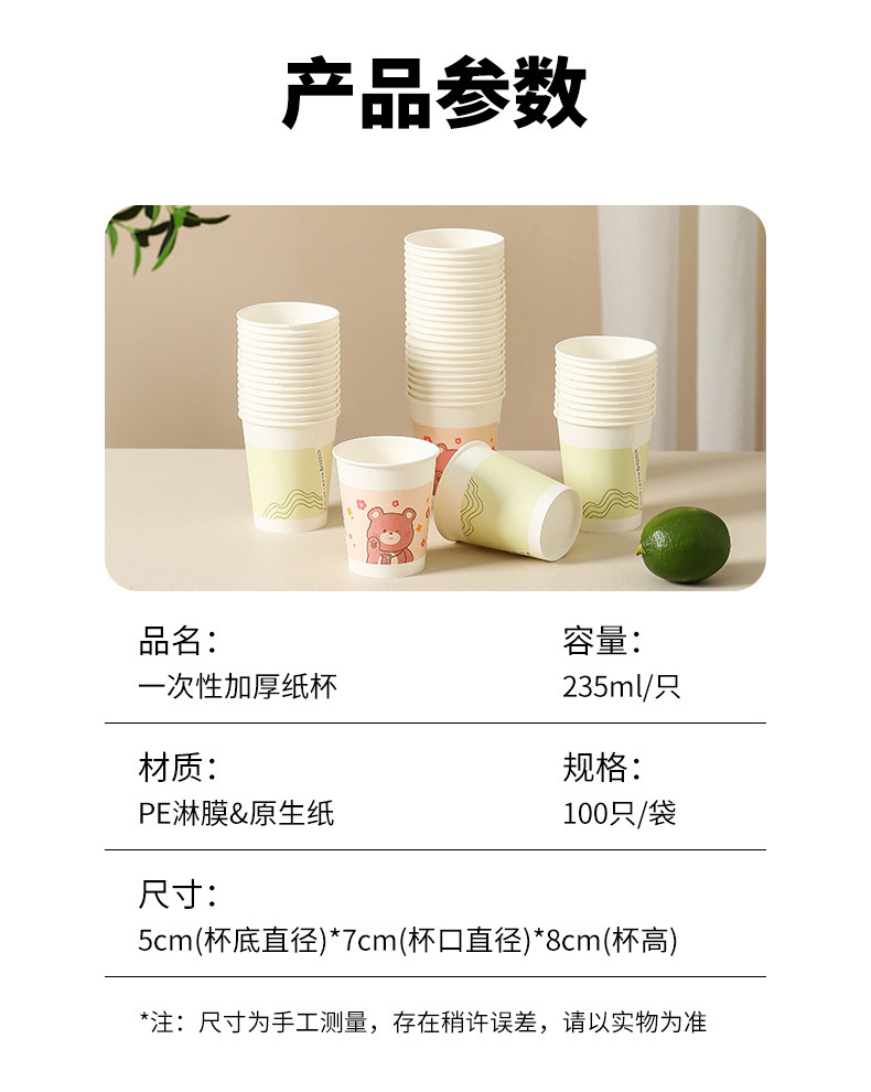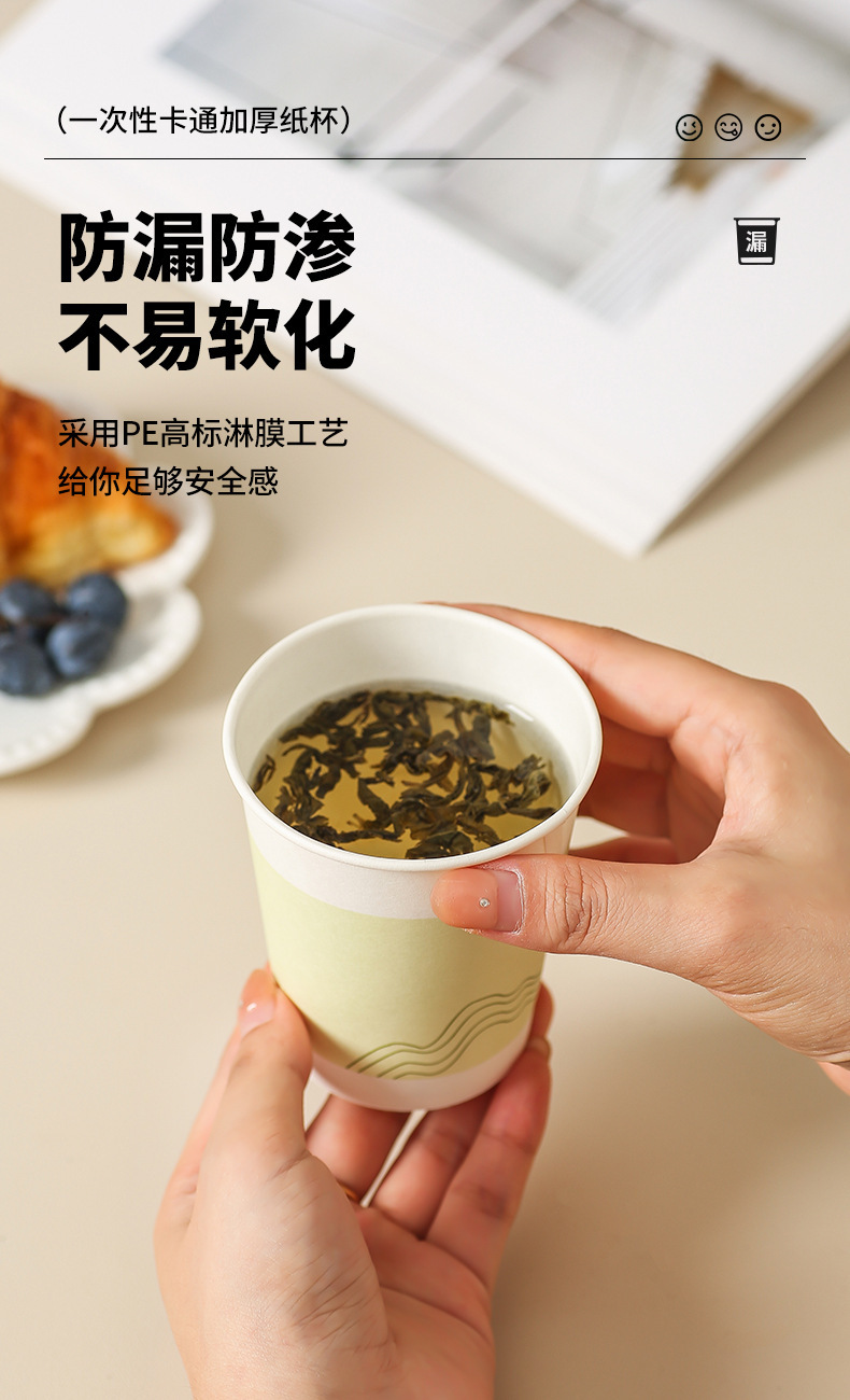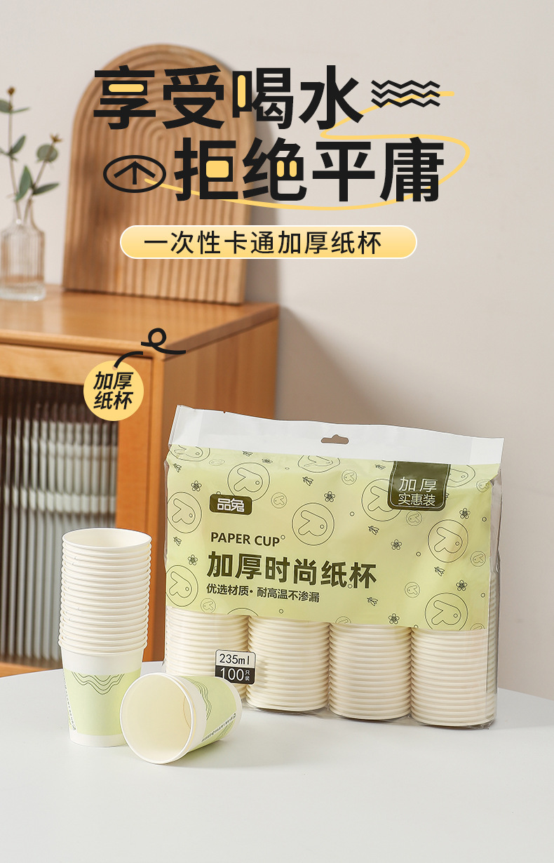 100只一次性纸杯加厚家用商用茶水杯子奶茶杯加硬龙年特厚品尝杯