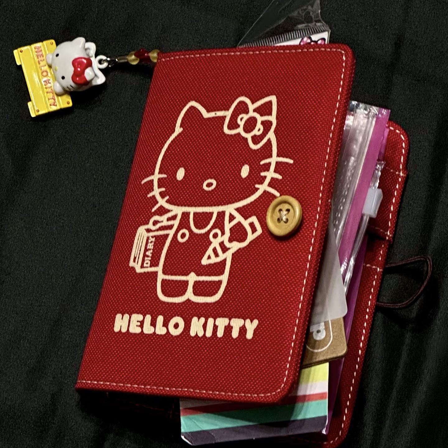 红色中古布艺m5活页手帐本kt猫高颜值日程记事笔记本子