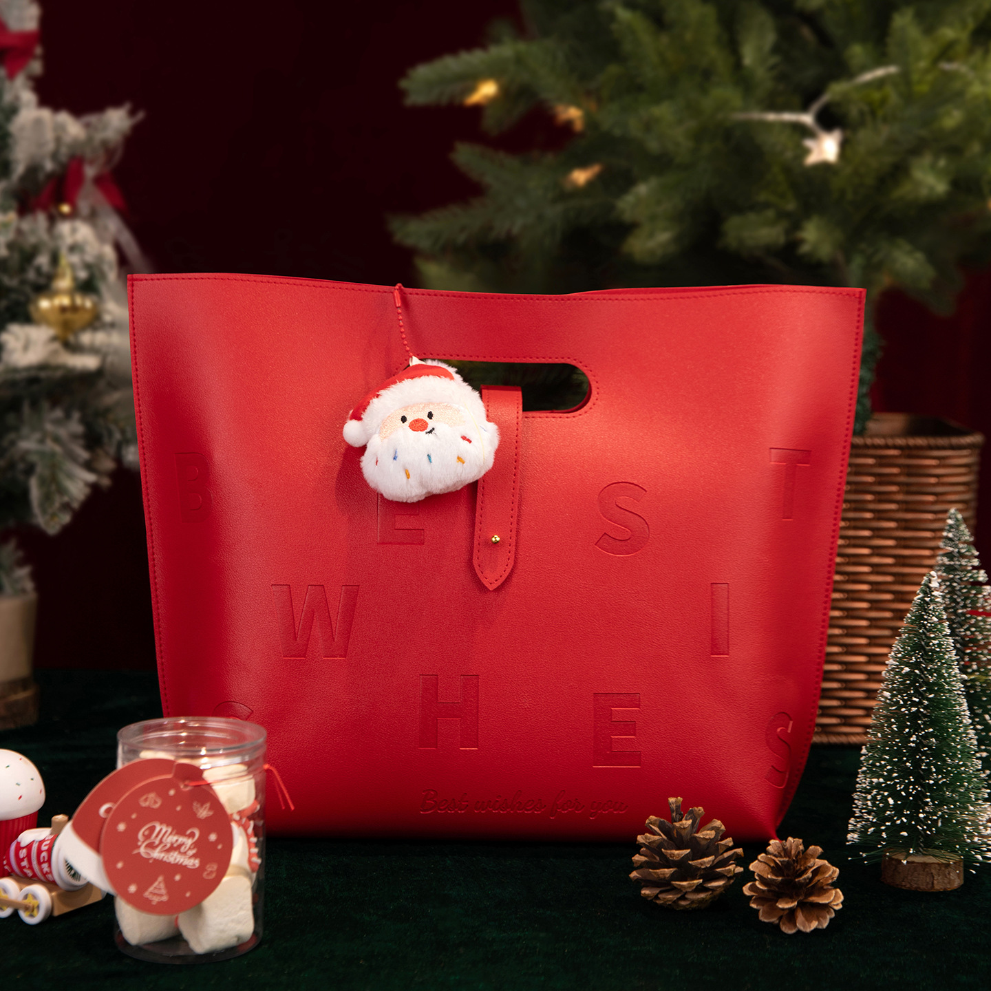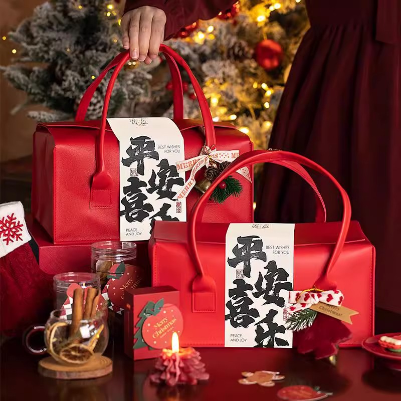 圣诞节礼盒包装盒空盒2025年新款苹果糖果礼物高档红色皮质手提包