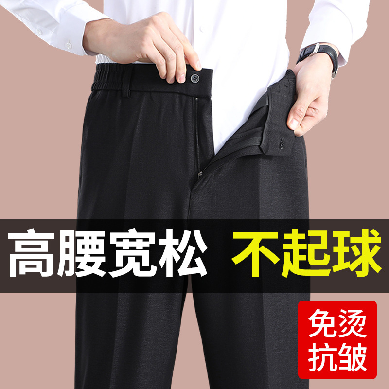 2025 春夏薄手のスーツパンツ中高年男性用ハイウエストスーパードレープスーツパンツノンアイロン抗シワビジネスカジュアルパンツ