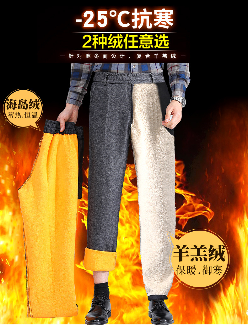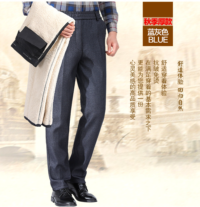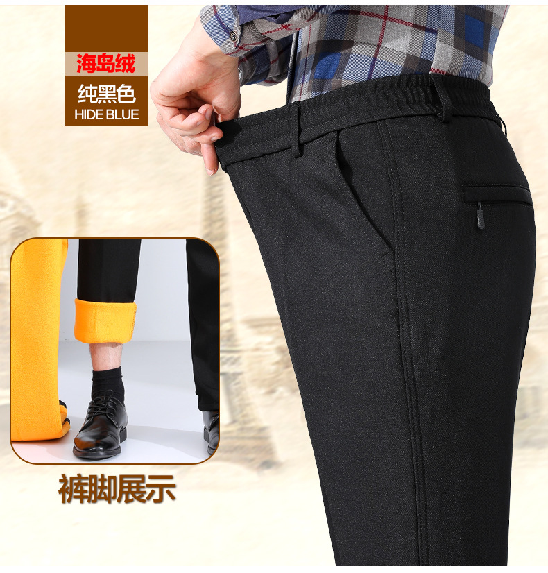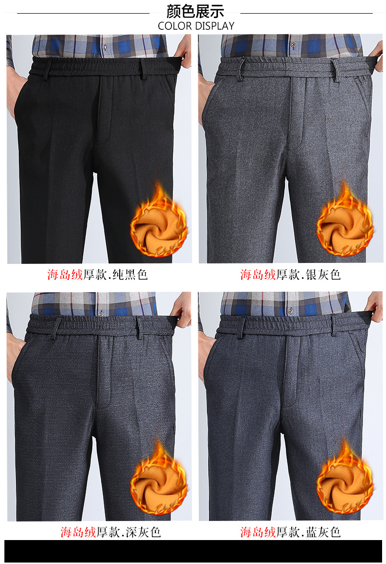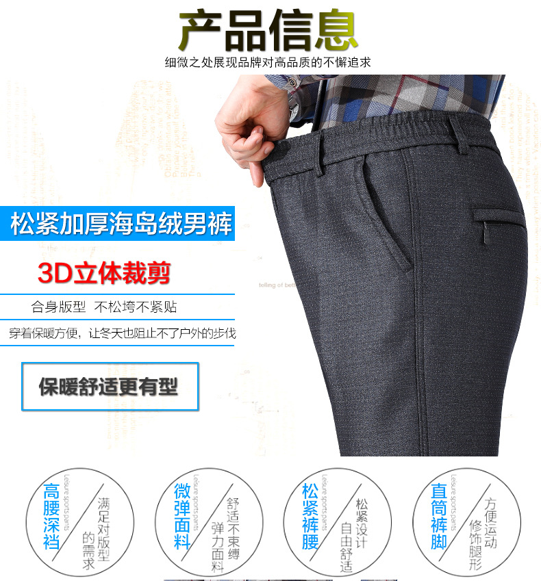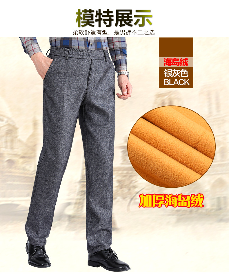 秋冬スタイルのベルベットはズボンを厚くして、中年の高齢者の保温お父さんのカジュアルパンツは腰のベルベットの男性パンツを緩めます