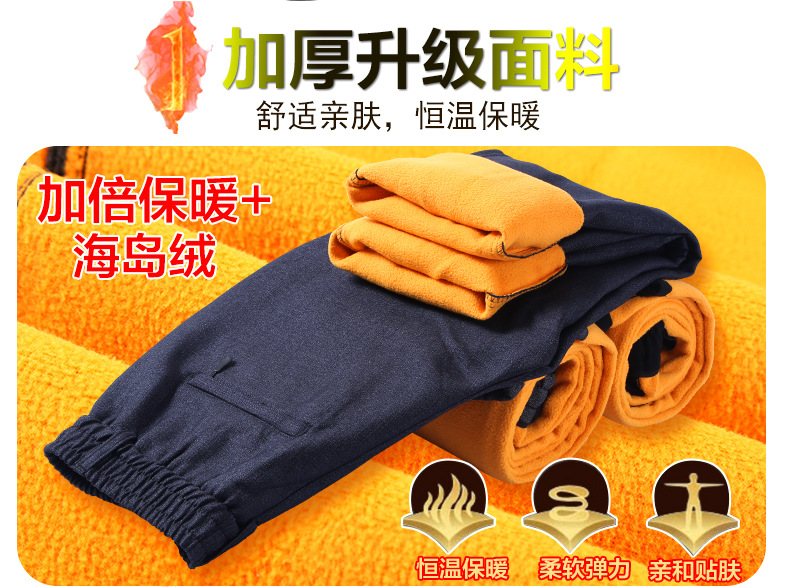 冬季爸爸加绒裤子中老年人松紧腰运动裤男秋冬款保暖薄绒棉裤60岁