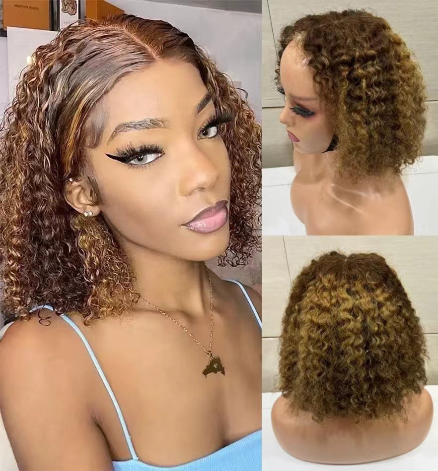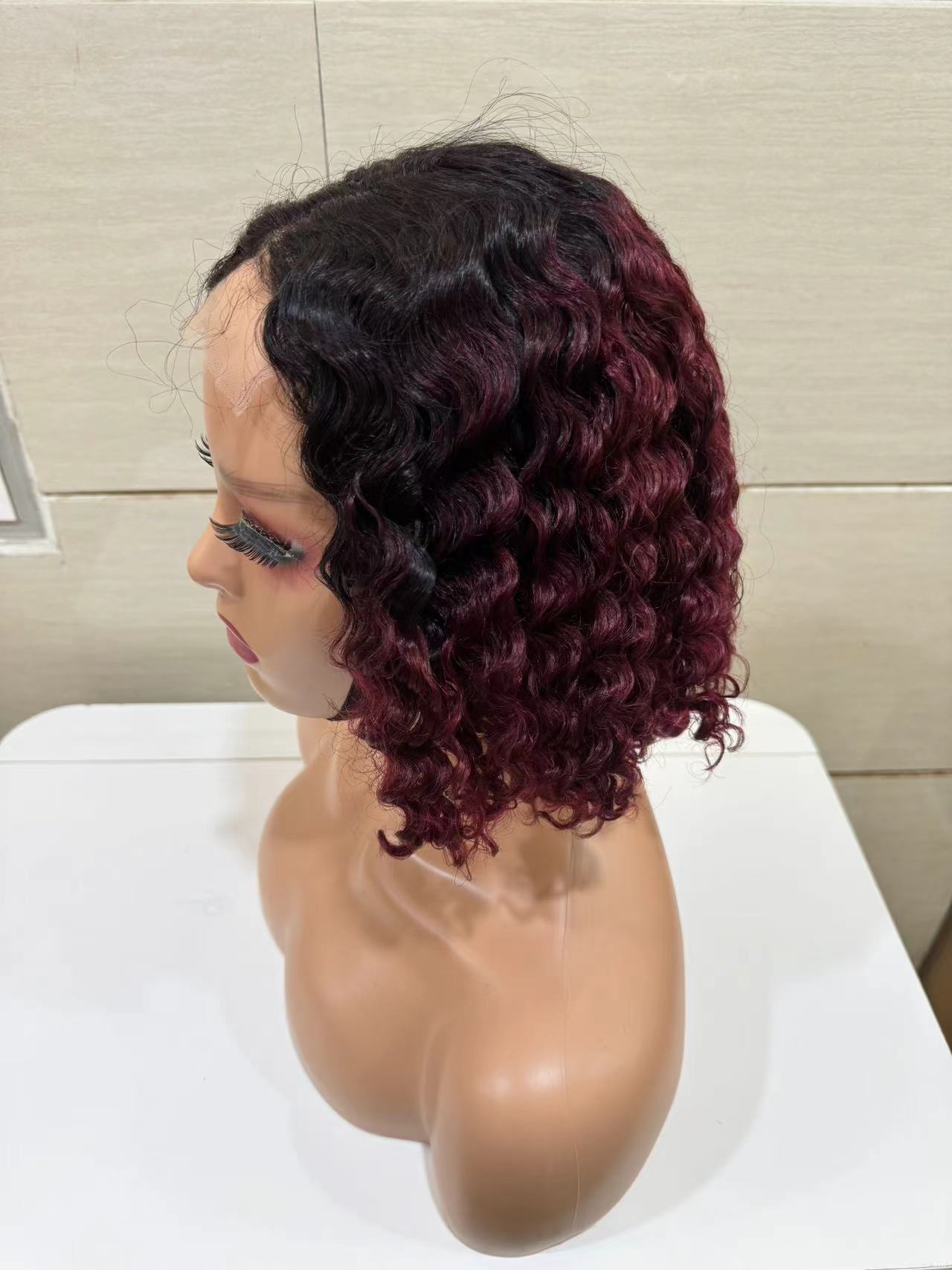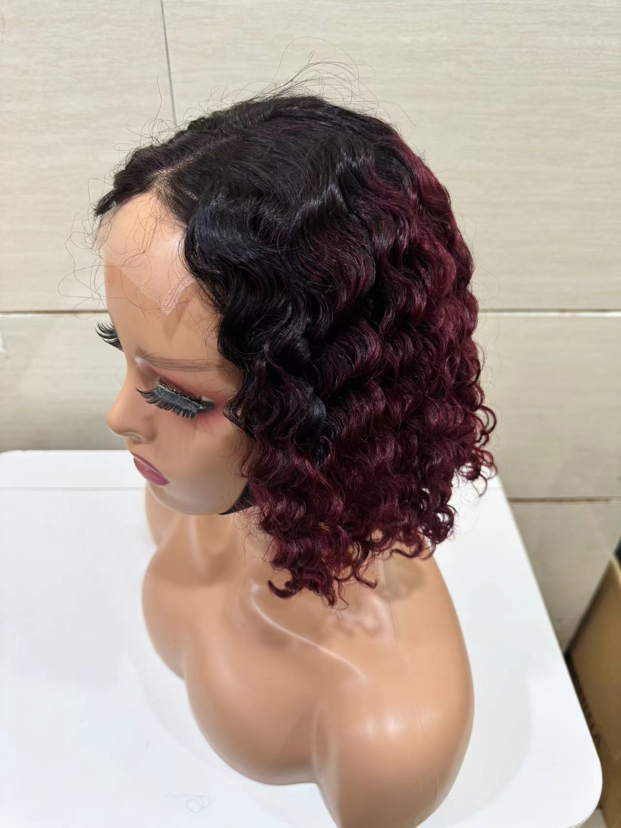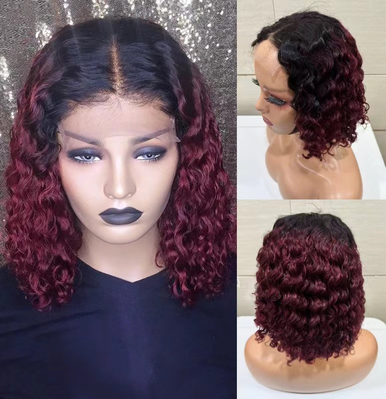 12a13*4フロンティアディープカーリーボブ200% densityインディアンヘア