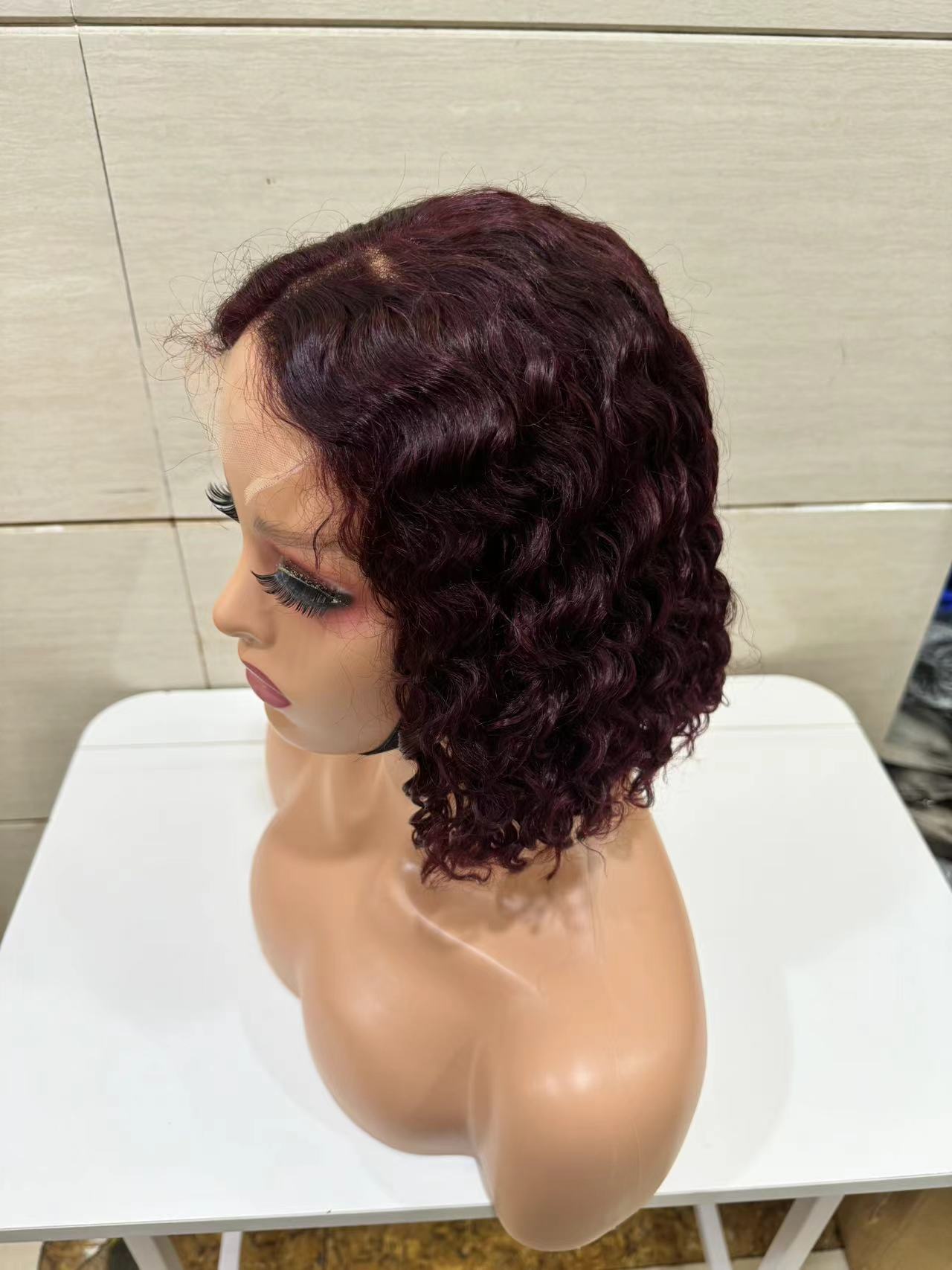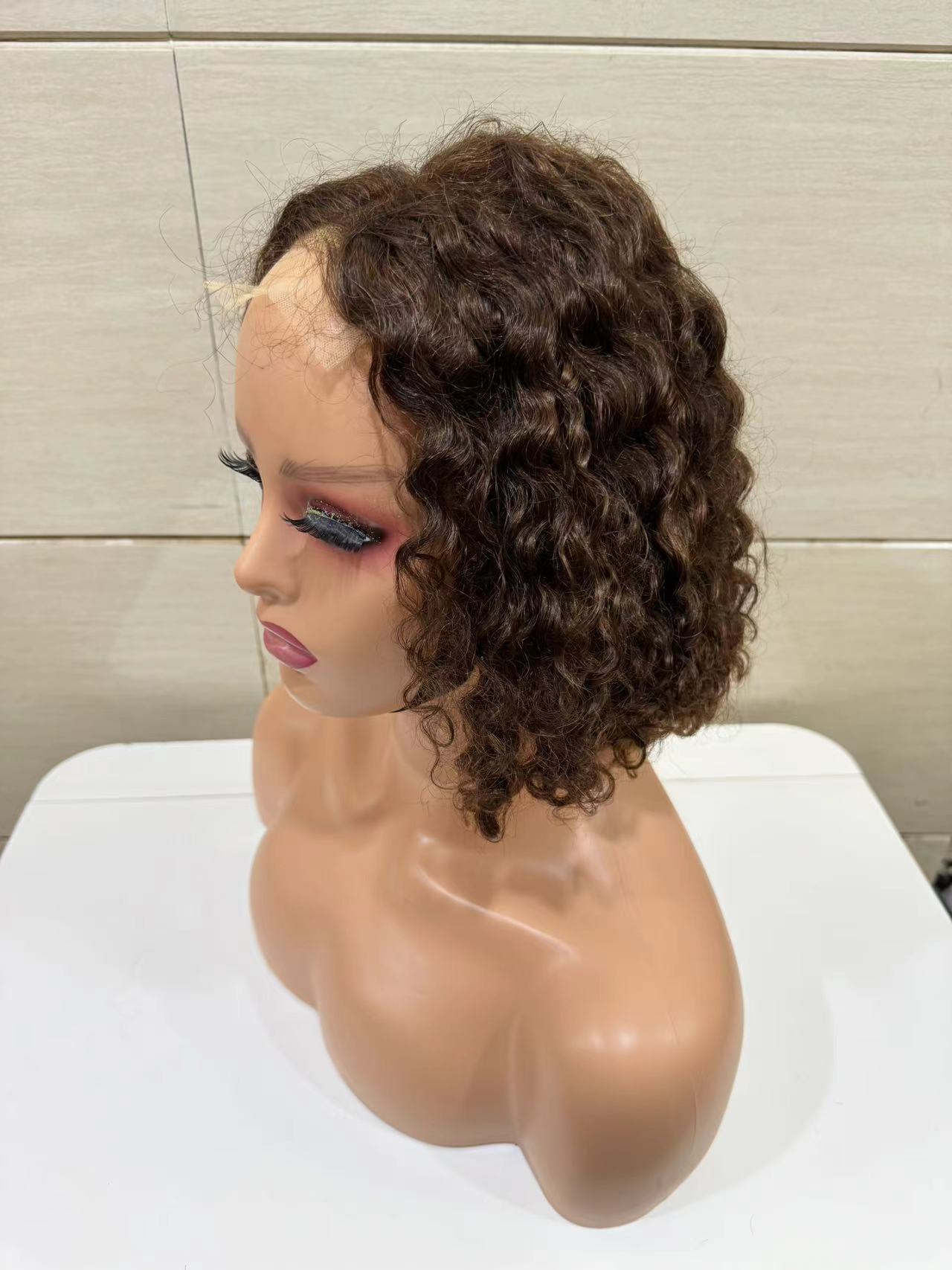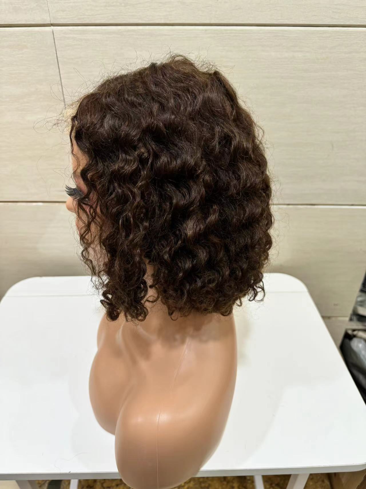 10A インディアン ウォーター ウェーブ ボブ 13*4 前頭人毛レースウィッグ