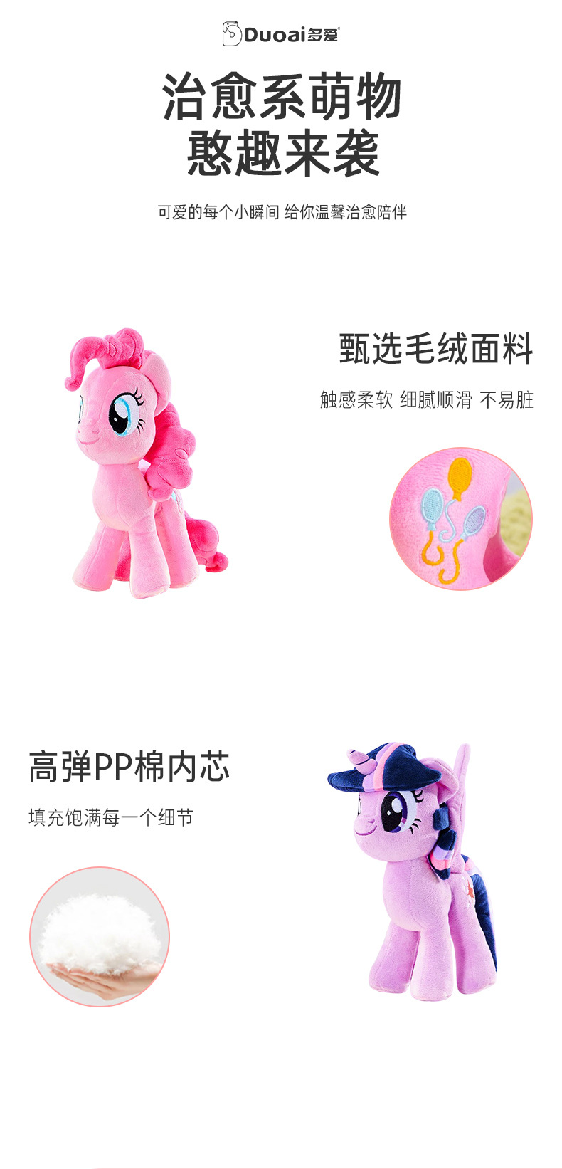 正版现货小马碧琪紫悦柔柔原型毛绒玩偶儿童过家家抱枕女孩玩具