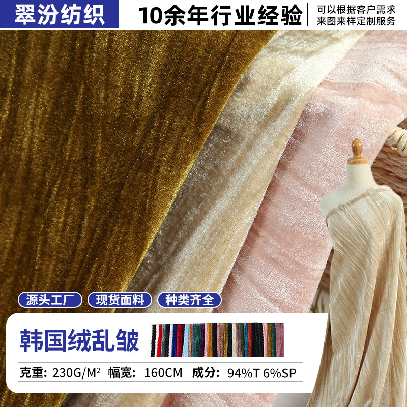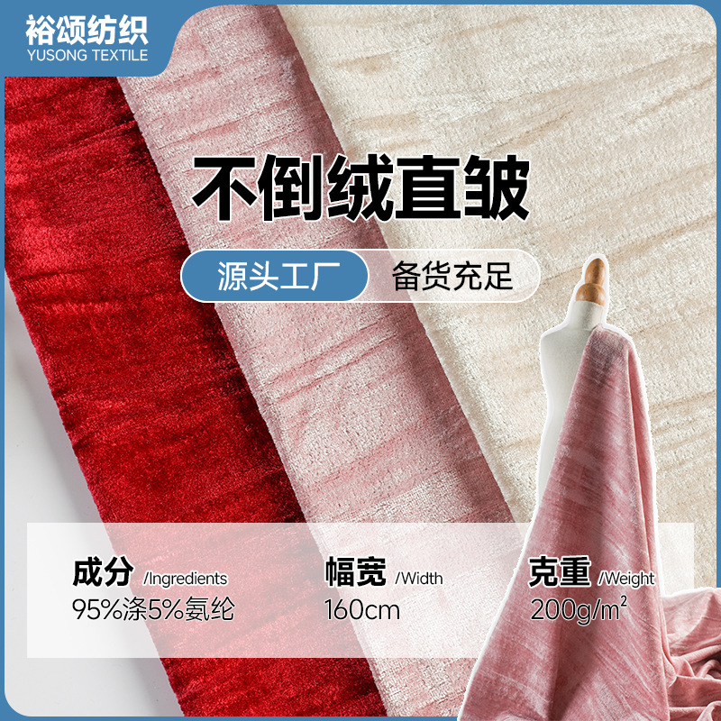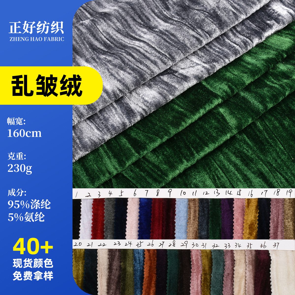 现货批发230g坑条乱皱绒抓皱弹力面料女装旗袍沙发箱包绒布布料