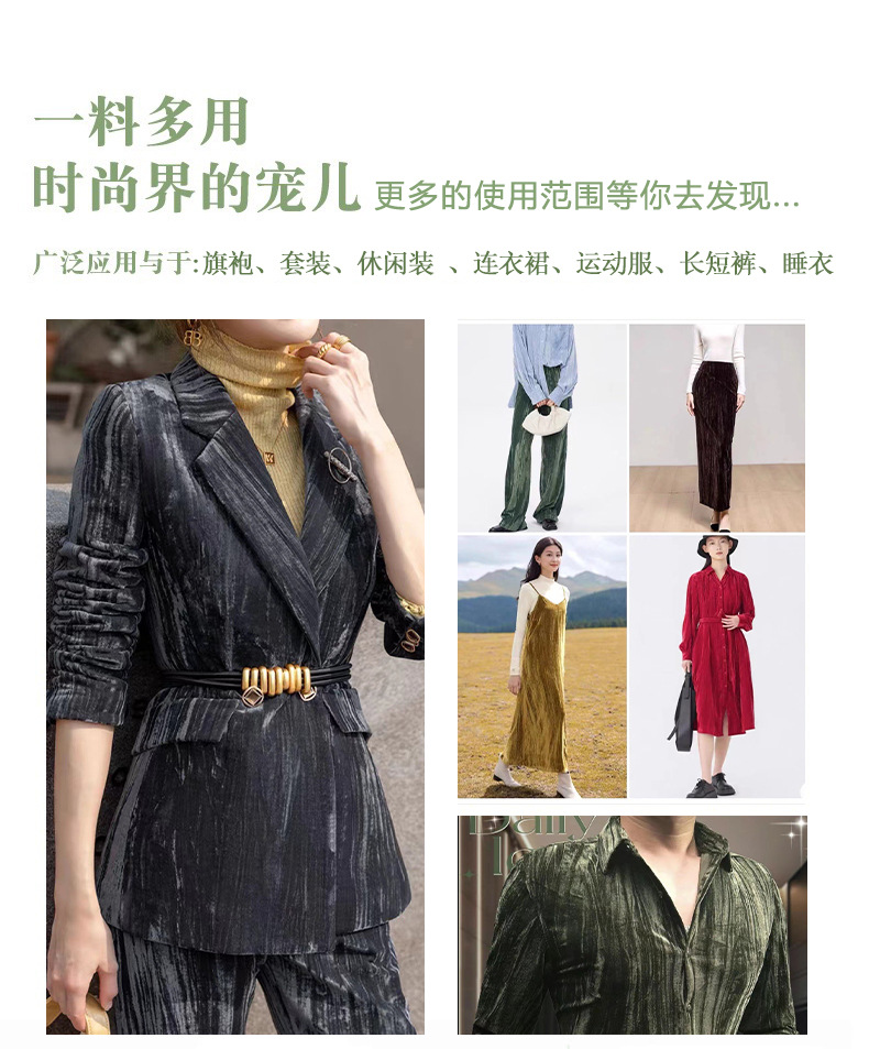 现货潮流时装布料金丝绒压皱 不倒绒直皱批发 秋冬保暖休闲服面料