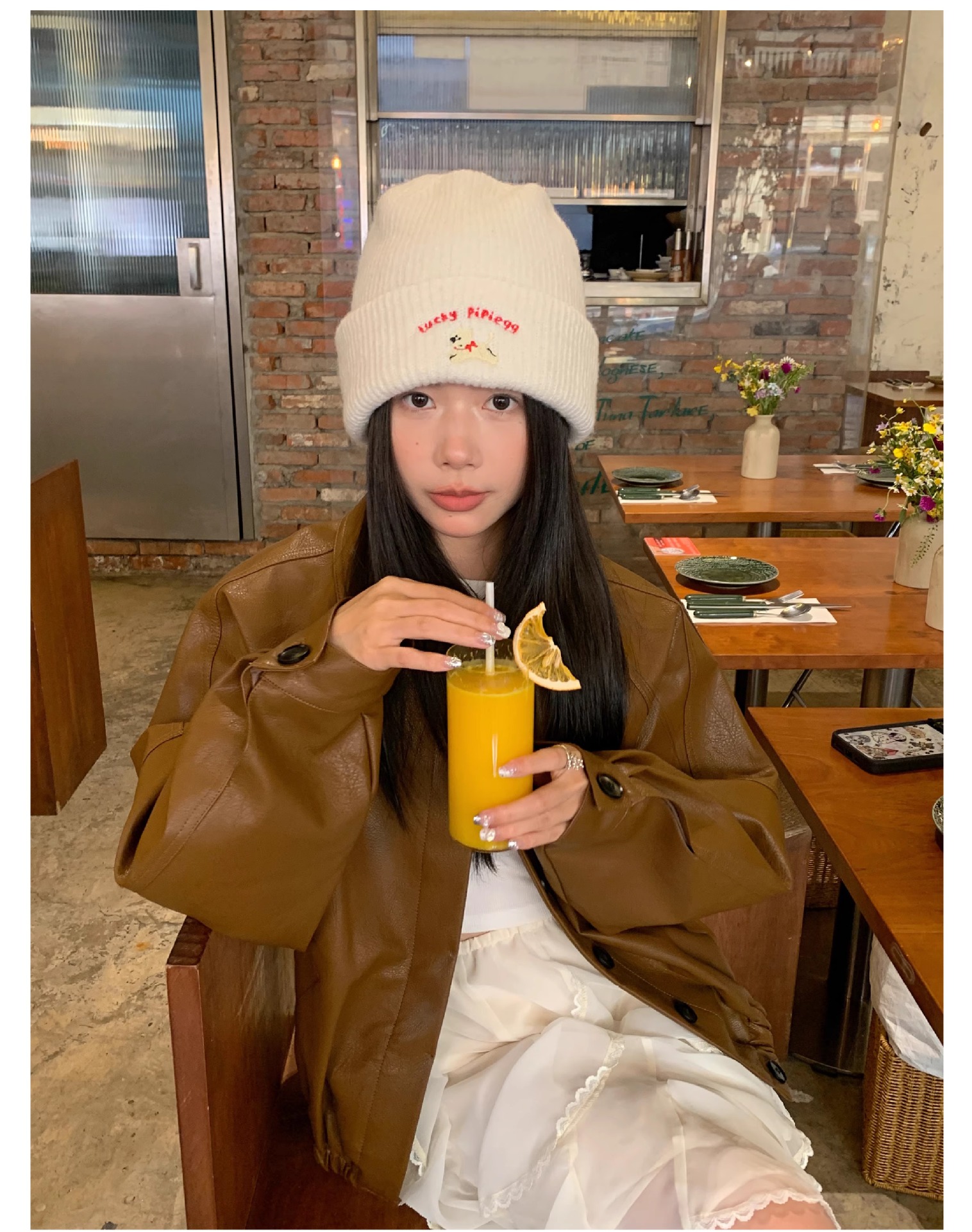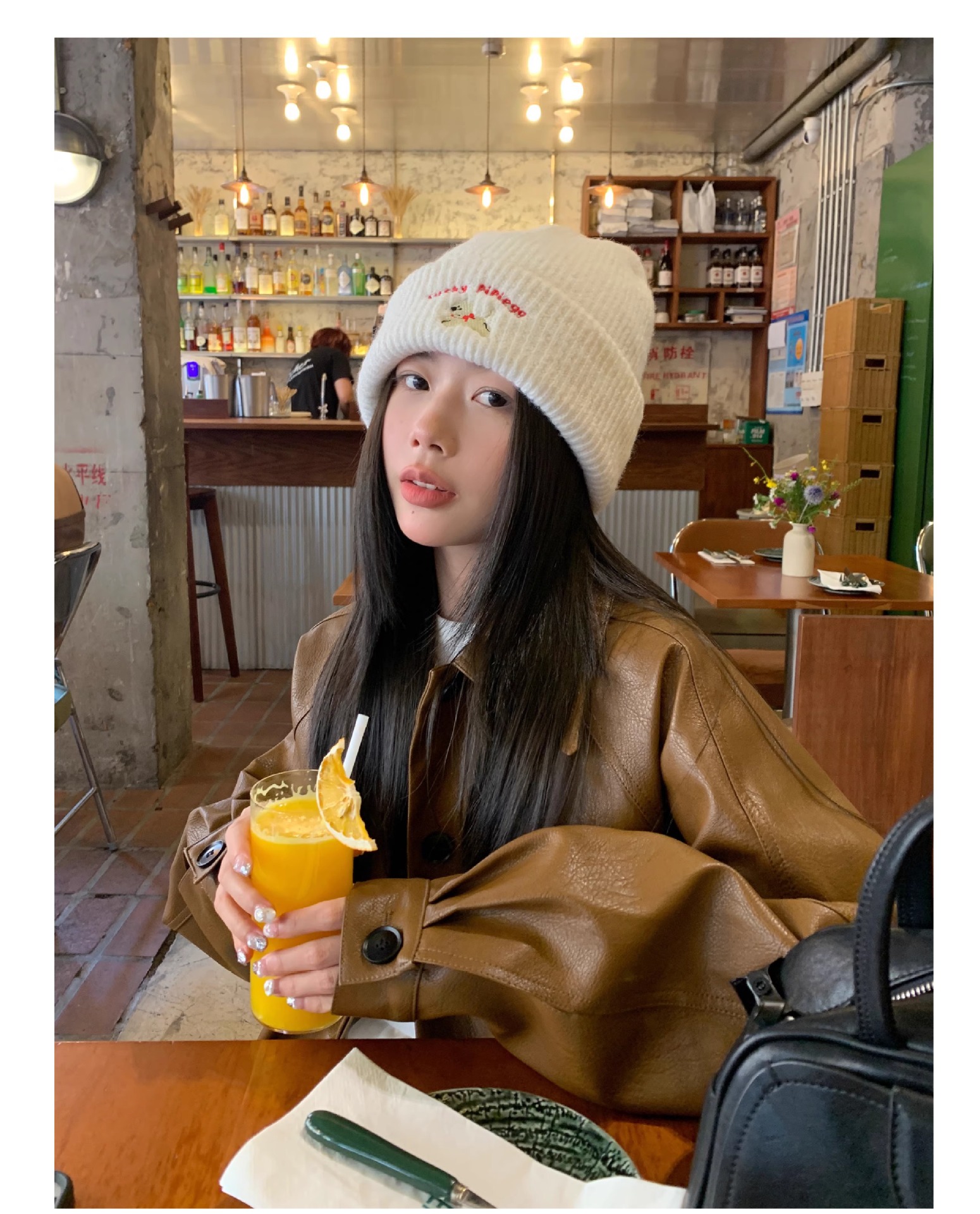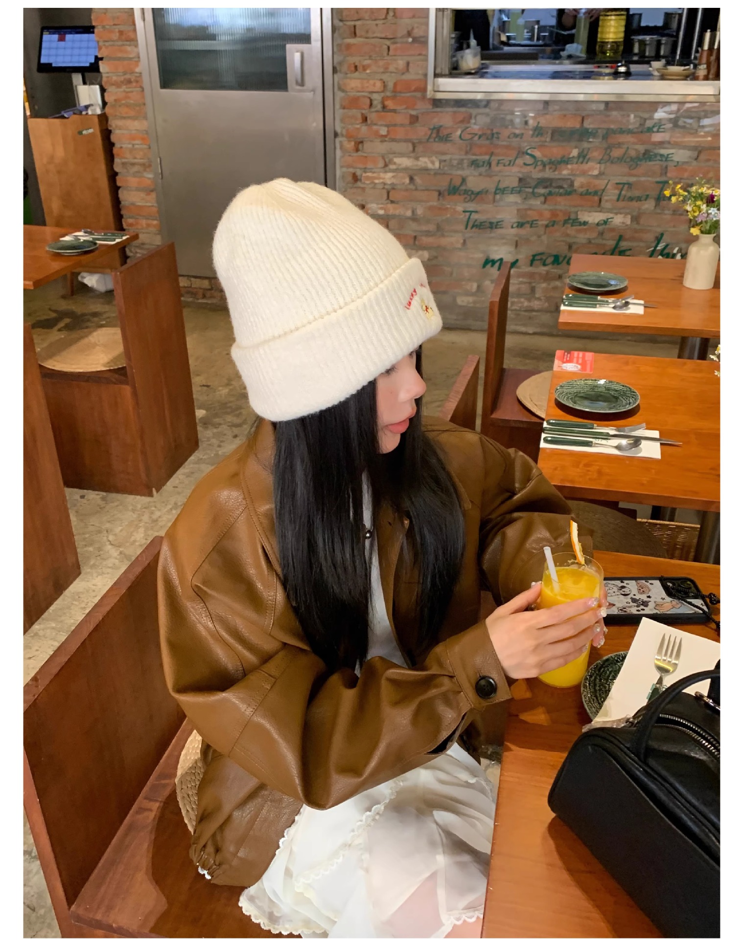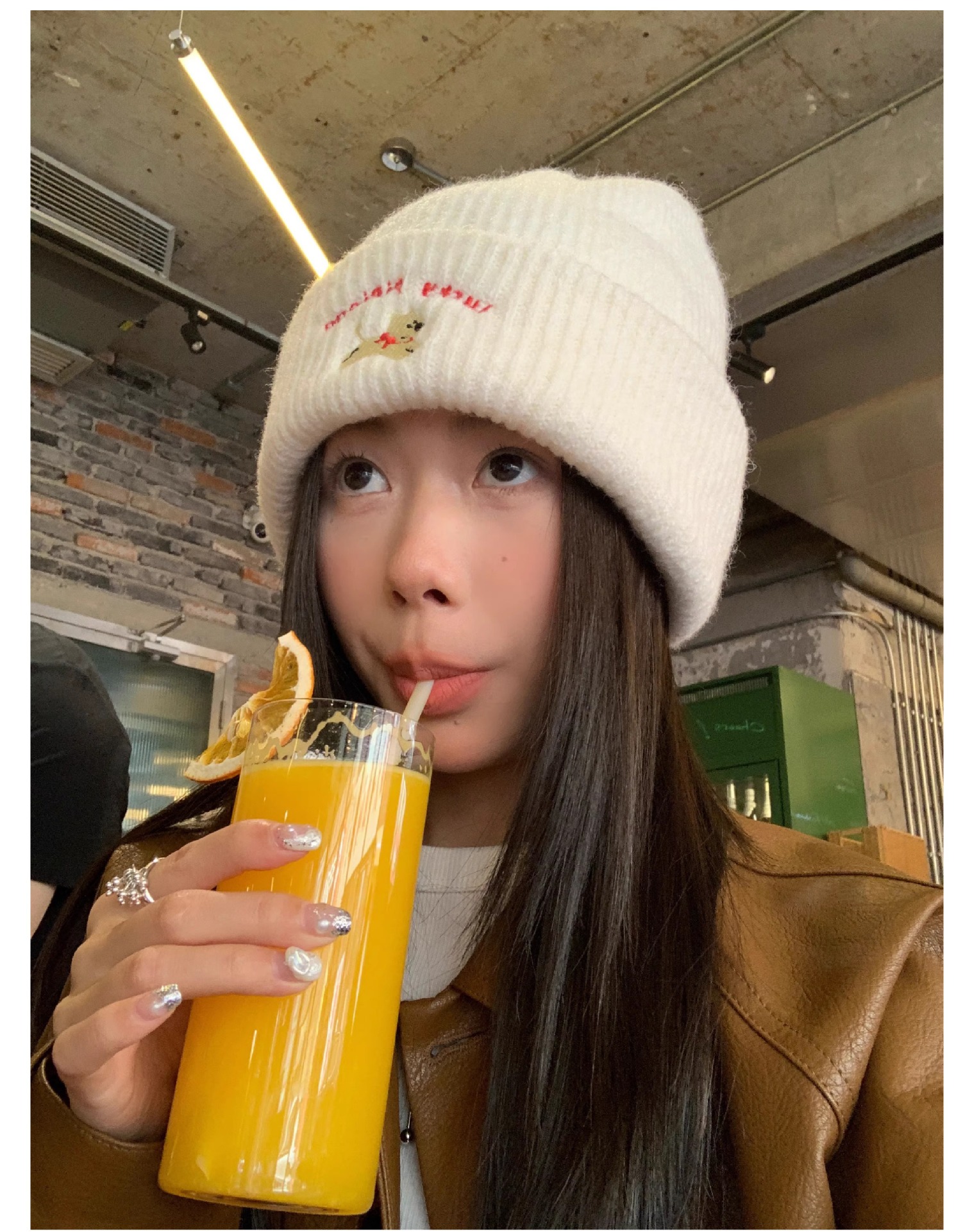 子犬の刺繍の韓国版の百合ニットの毛糸の帽子は顔の小さい保温の耳の秋冬の包頭の帽子の女性の卸売りを現します。