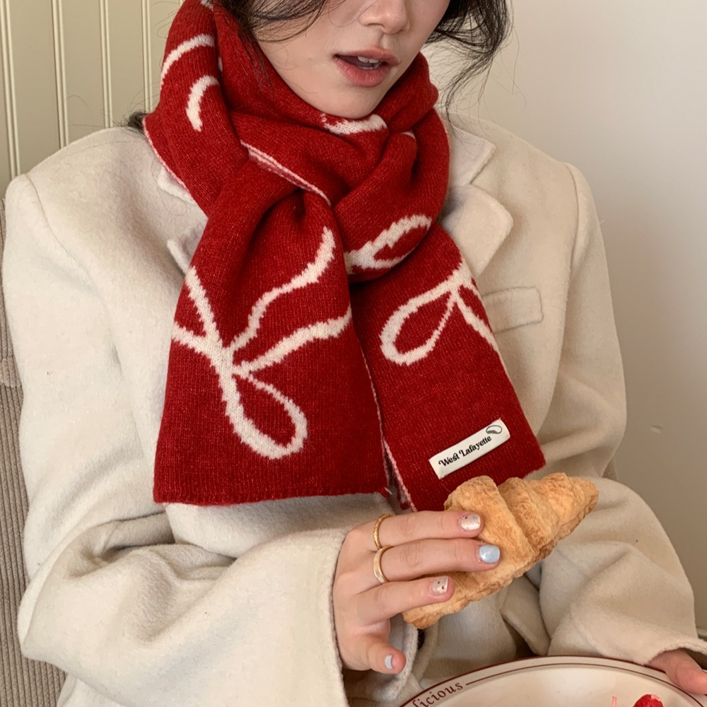 ウール混紡ニットの蝶結びの毛糸カップルの高級感の小さいマフラーの女性の韓系は厚くて暖かいです。