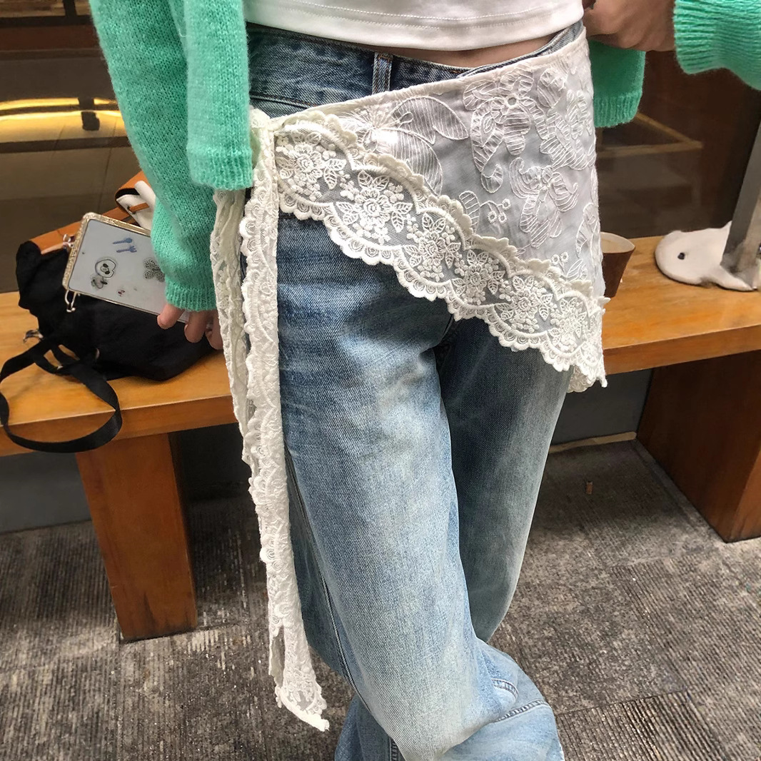 韓国風デザイン三角スカーフ、レイヤードスカート、ニッチアウターウエストスカーフ、スイートレース、ハイウエスト、着痩せ