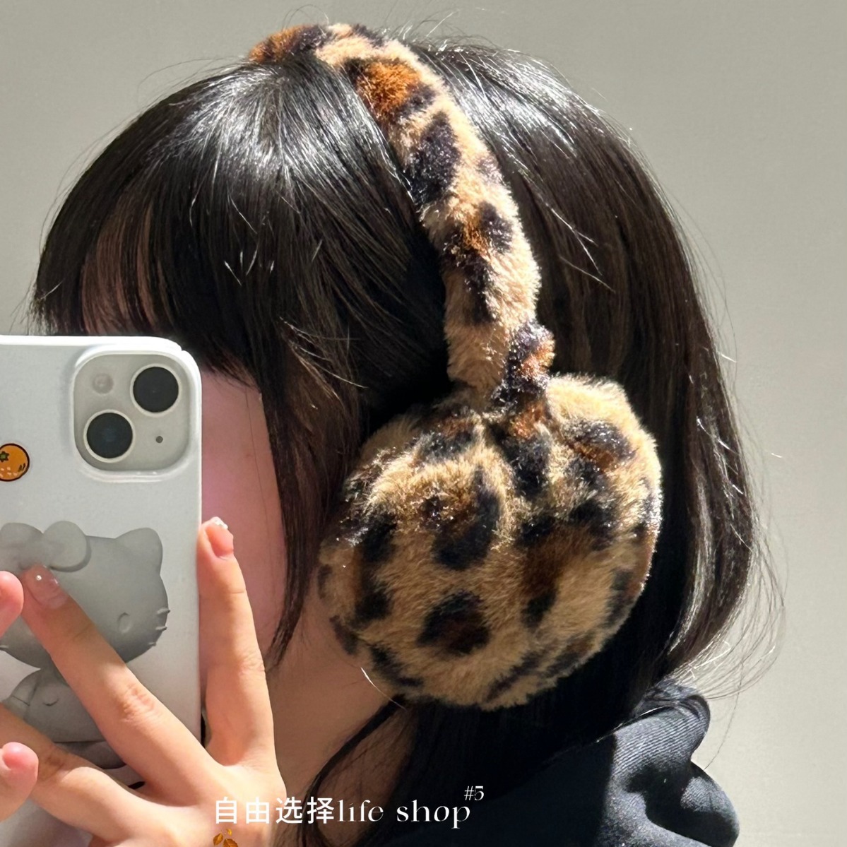 秋冬のヒョウの紋様の柔らかいウサギの絨毯の耳カバーの耳の保温の甘いクールなギャルの保温のイヤホン式のぬいぐるみの耳カバーの女子学生