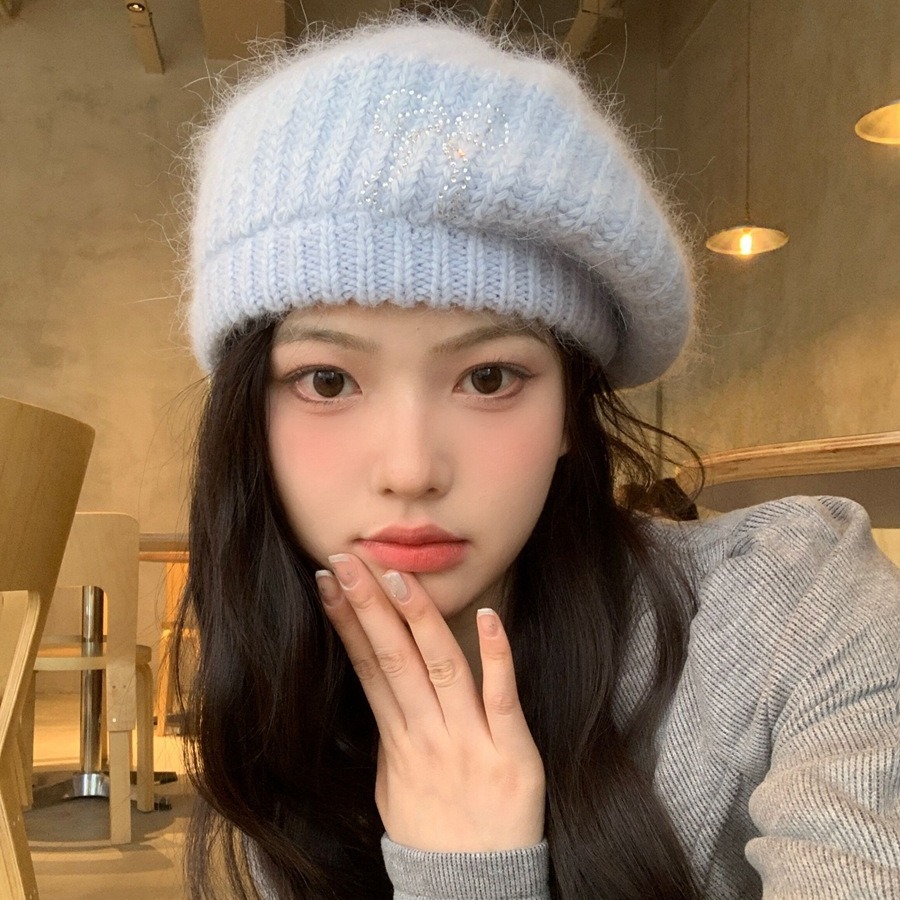 レンガの蝶結び馬海毛ベレー帽の子供秋の冬の韓国版の大きい頭の周りの毛のふわふわしているニットの画家の帽子