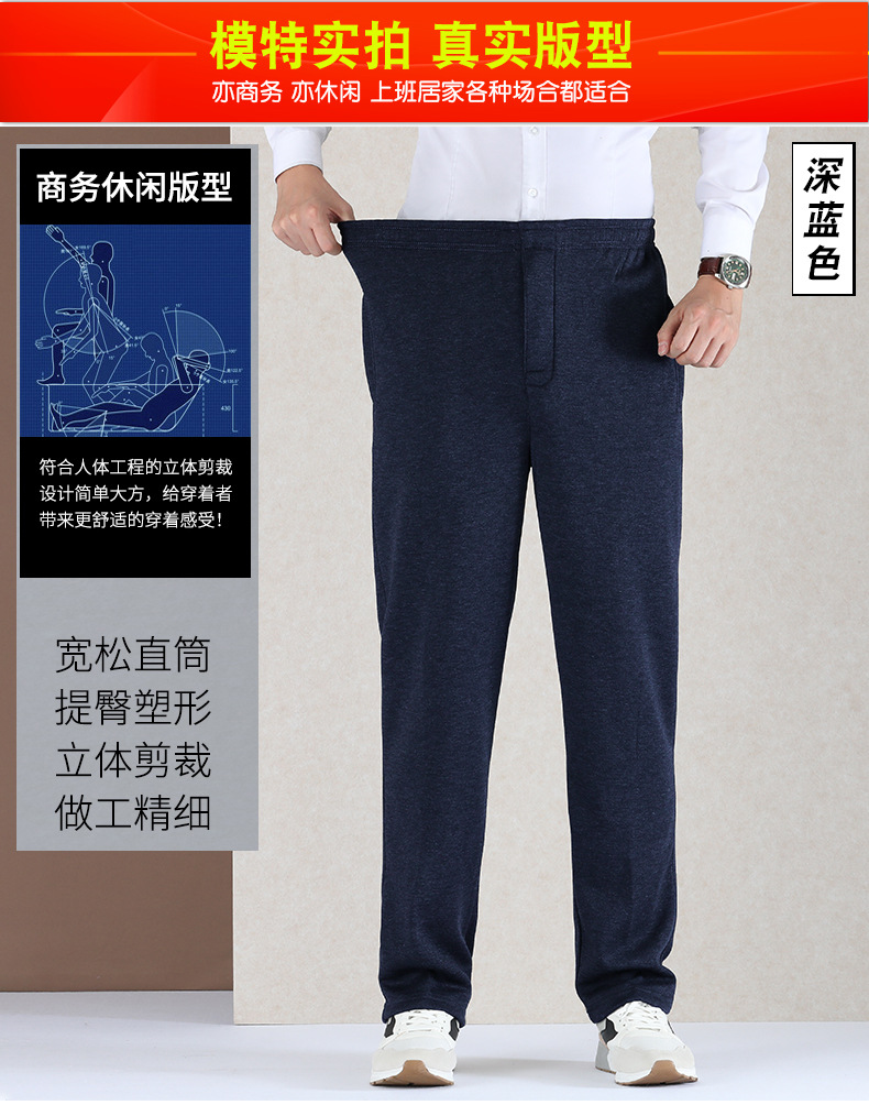 秋冬スタイルのベルベットはズボンを厚くして、中年の高齢者の保温お父さんのカジュアルパンツは腰のベルベットの男性パンツを緩めます