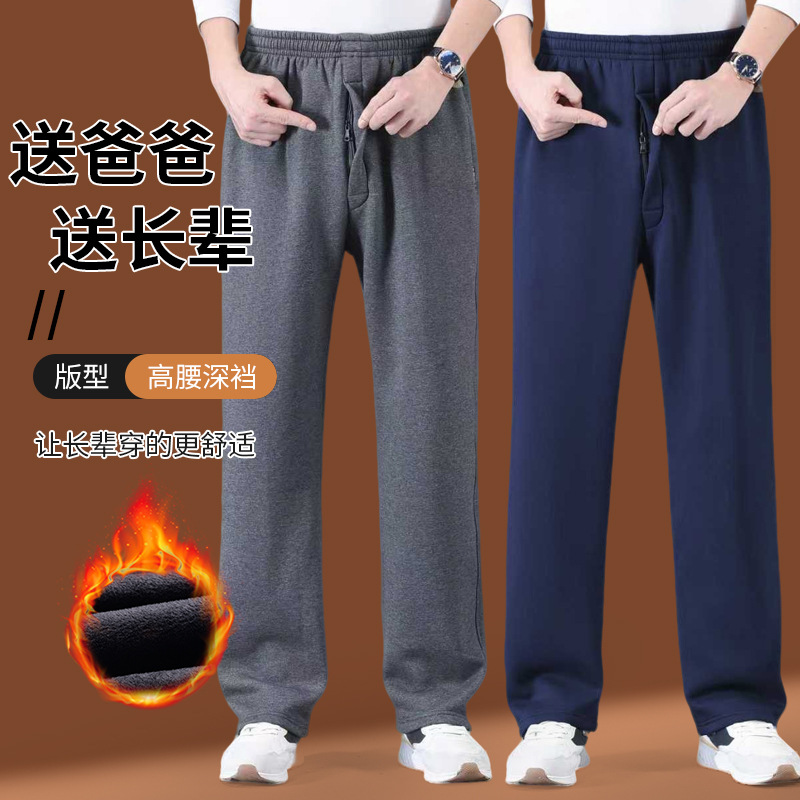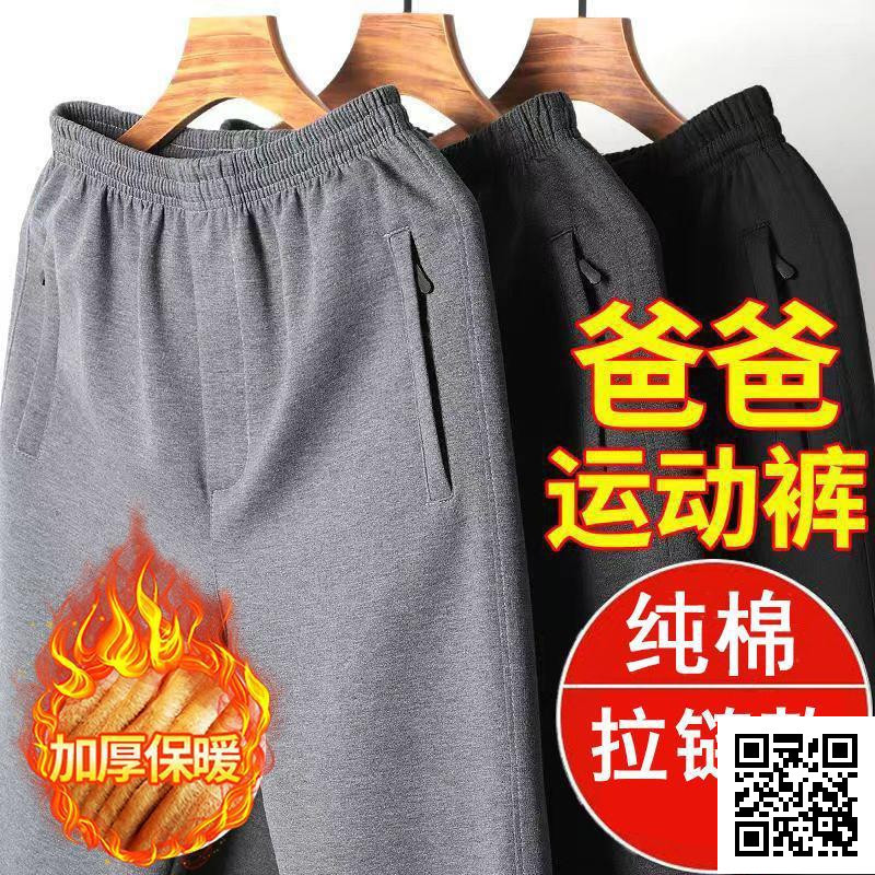老人裤子男款松紧带春秋中老年男士休闲裤男裤爸爸运动裤加绒加厚
