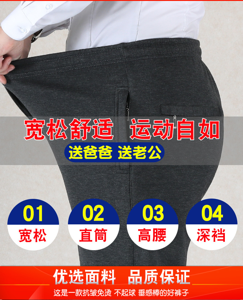 高腰深档70岁爸爸款春秋裤子中老年松紧腰男裤加绒老人宽松运动裤