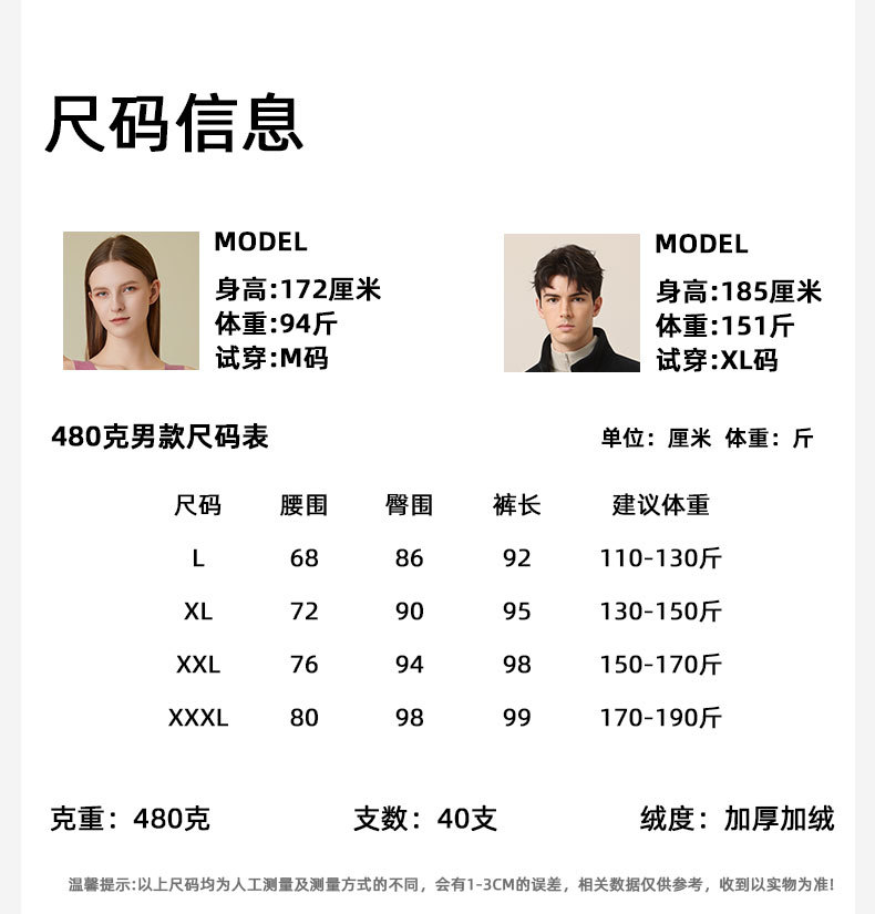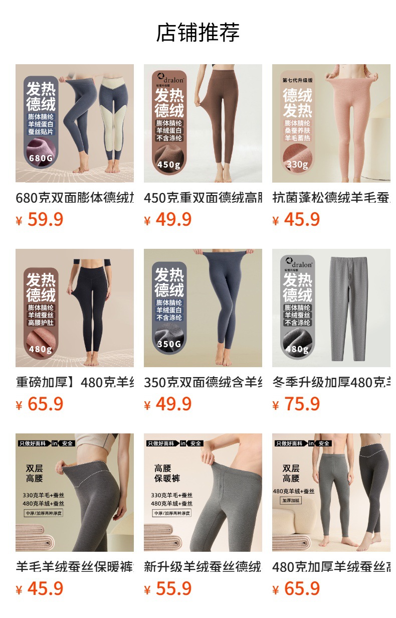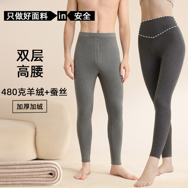 480克加厚羊绒蚕丝高腰保暖裤双层腰加绒打底裤秋冬防寒男女秋裤