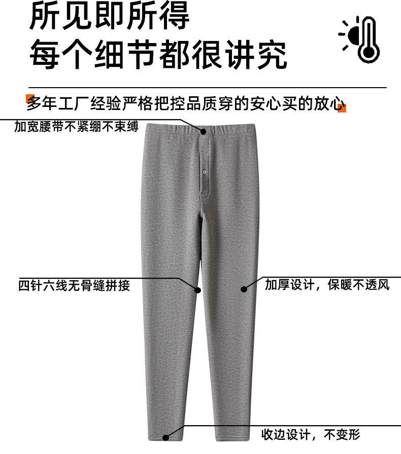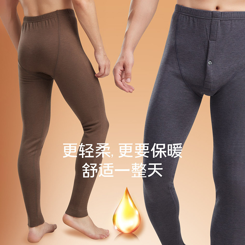 新升级羊绒蚕丝德绒男款加绒加厚高腰秋裤男士冬季防寒羊毛保暖裤