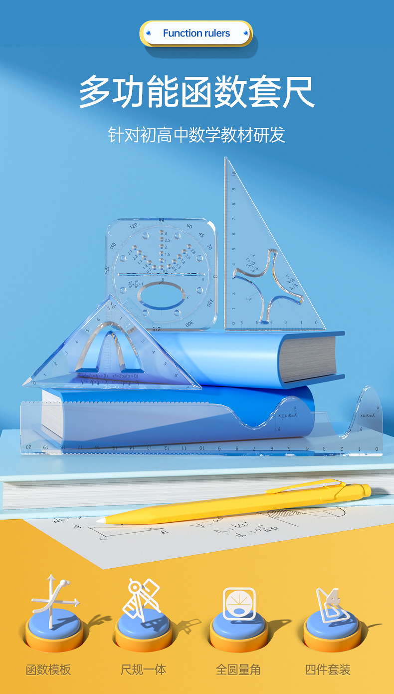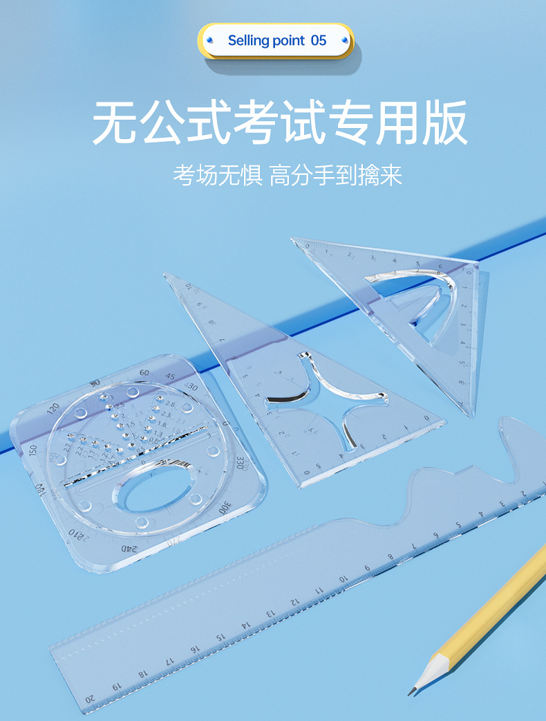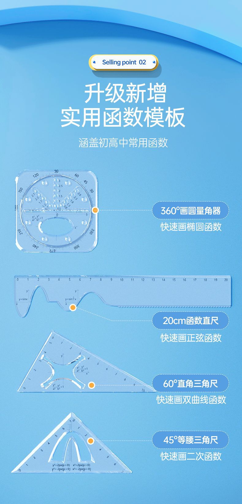 関数の定規高校生の多機能の幾何学の絵の定規の直尺の三角の定規の定規のセットの中で悟ります