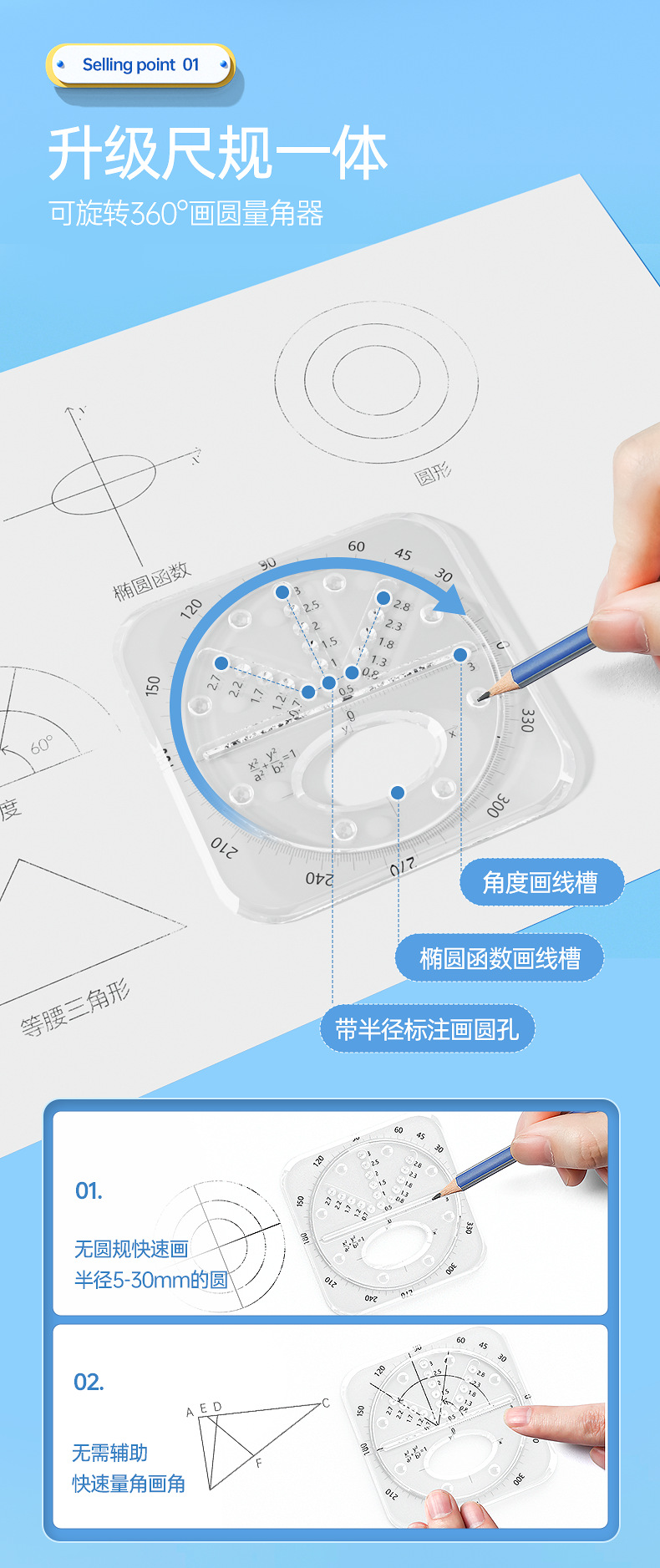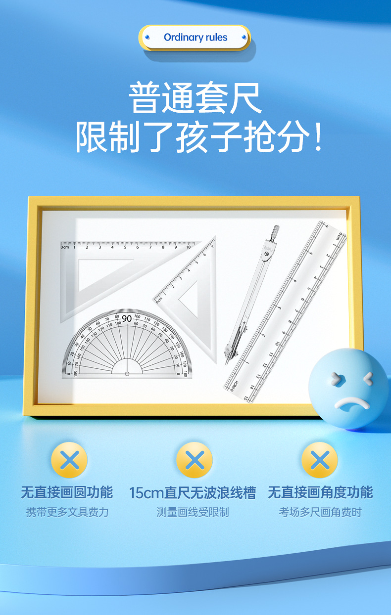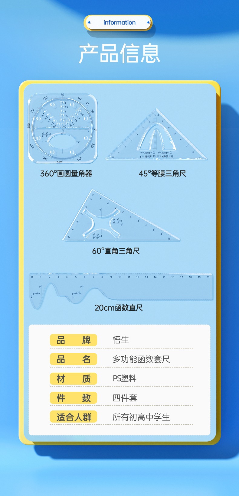 関数の定規高校生の多機能の幾何学の絵の定規の直尺の三角の定規の定規のセットの中で悟ります